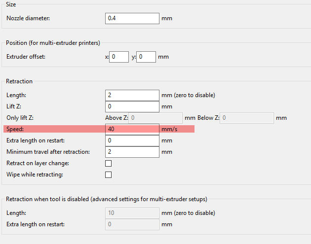 to je rychlosť retrakcii, rychlosti tlače najdeš na prvej založke a speed
