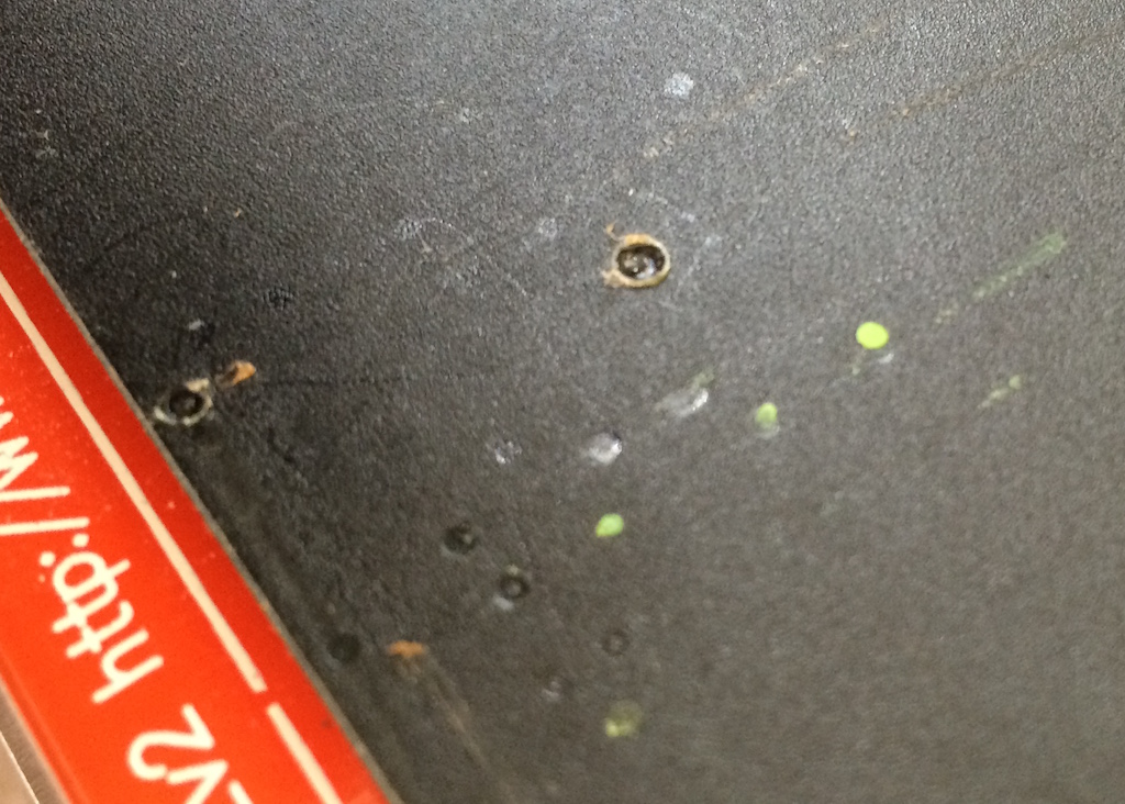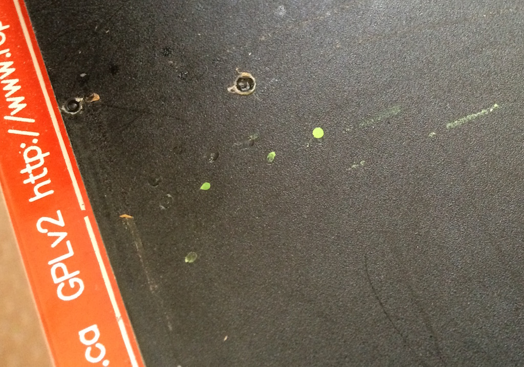 Jen taková ukázka co se stane s BuildTakem pokud až na něj položíš trysku o teplotě 200°.