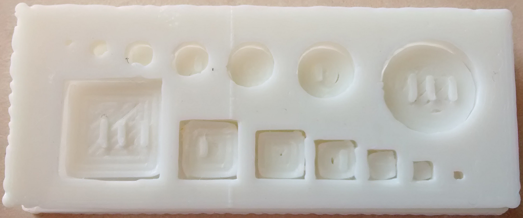 Diry/vystupky jsou tam vzdy kulate a hranate, rozmery 10, 6, 5, 4, 3, 2, 1 mm