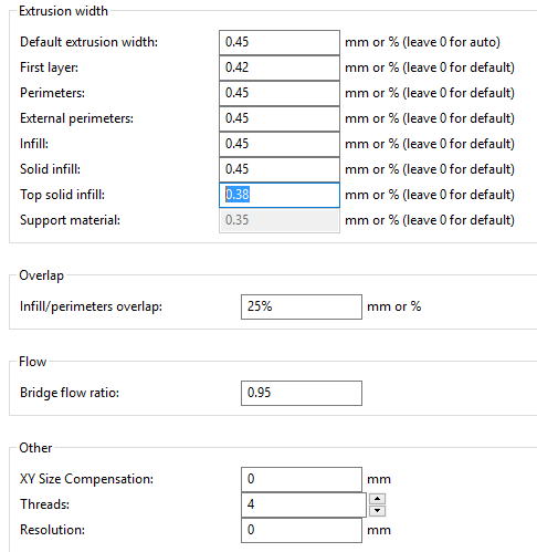 Podle me je lepsi nektere polozky jako treba top solid infill zadat v procentech, zakladni jako perimetr a infil si nastav v mm, ale ty jenz jsou z nich odvozene napr. external perimeter nebo prave Top solid infill uz v procentech a pak postupne ubirej procenta v nastaveni Top solid infill, dokud nebudes s posledni vrstvou spokojeny.