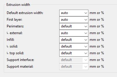 Curaengine nema extrusion width (predpoklada stejnou velikost jako je tryska), nova Curav3.x uz ano. Ale to by nemelo delat velkej problem. Stejne musi dat slicer trysku od obvodu o polovinu extrusion width.