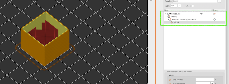 Když použiješ modifikátory rozsahu měnit ledacos i úhel výplně ... na příkladu vypnutá výplň od vejšky 10mm