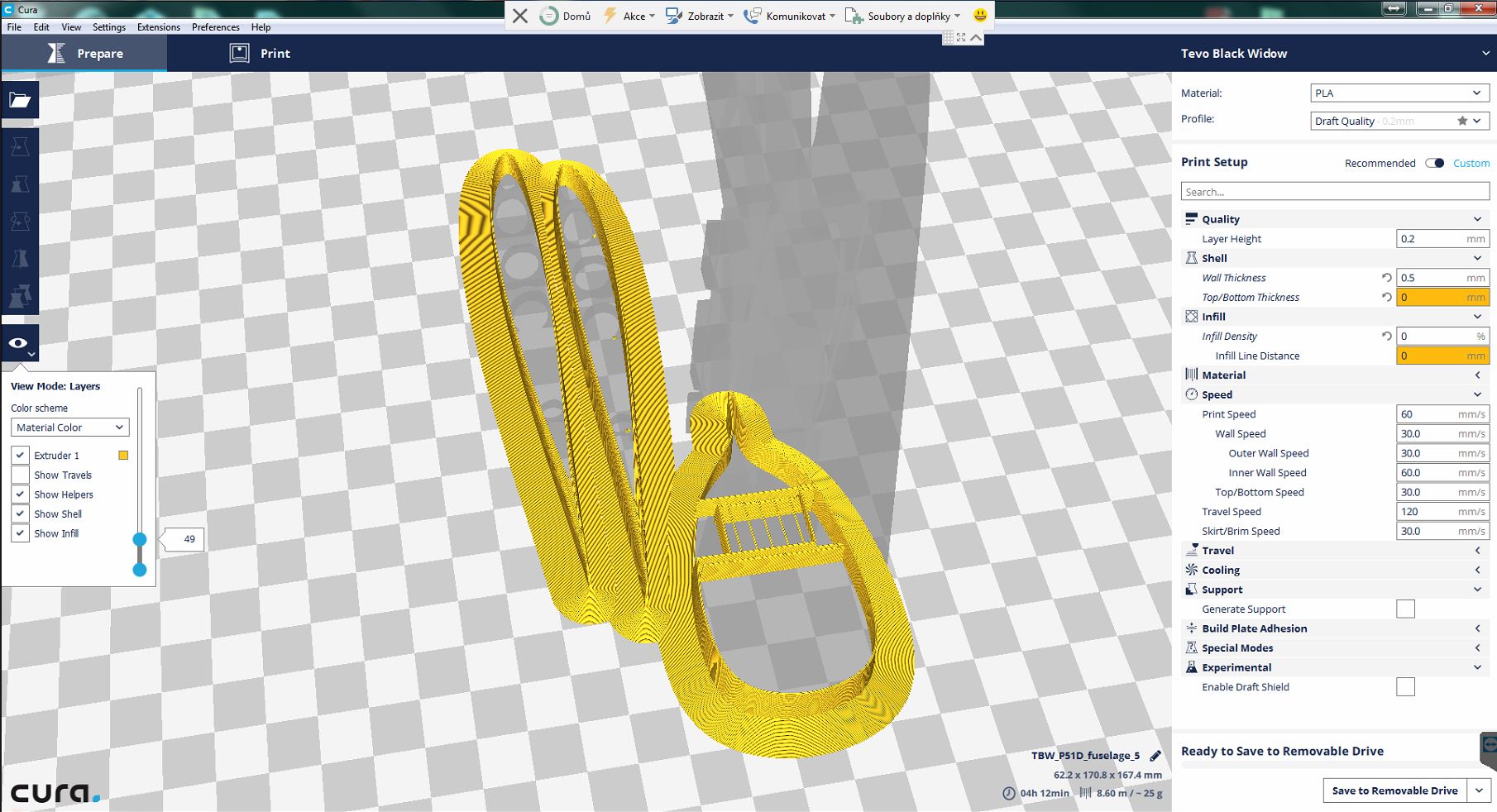 cura je umí, dokonce pro curu mají vyladěný profily. Já teda zatím tisknu trup po jednom, ale jak se dostanu k pc, zkusím tam nahrát více dílů křídla a dám vědět co to udělá.