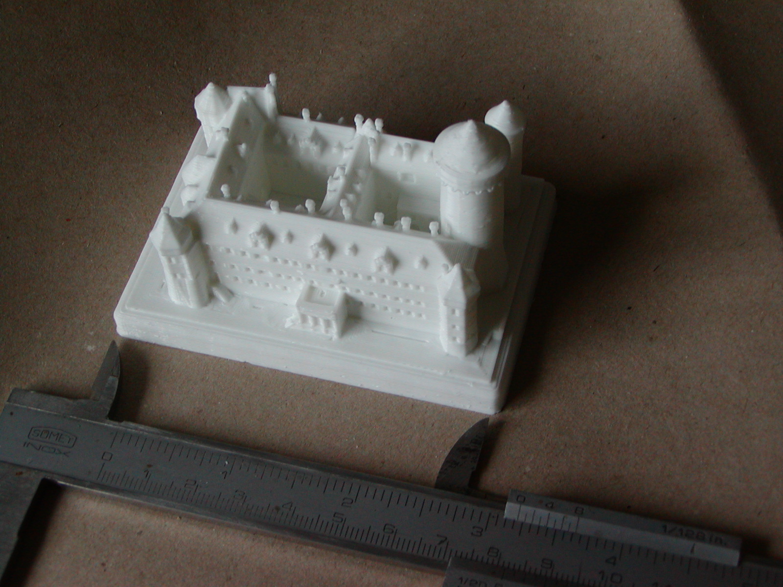 Rozdíl je v tom, že jen na té malé ploše Slic3r vygeneroval o jednu hozirontální vrstvu více. Takže když došlo k prvnímu hozizontálnímu výtlaku po celé ploše, jen v jednom úseku nebyla housenka tlačená do vzduchu. Zatímco téměř všude měla první horizontální vrstva kulatý průřez vytlačené housenky, na jednom místě se už tisklo proti překážce a došlo k výtlaku plastu do stran.