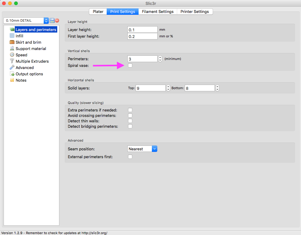 nejlíp je tisknout solid objekt a nastavit Spiral vase tisknu tak třeba náramky: