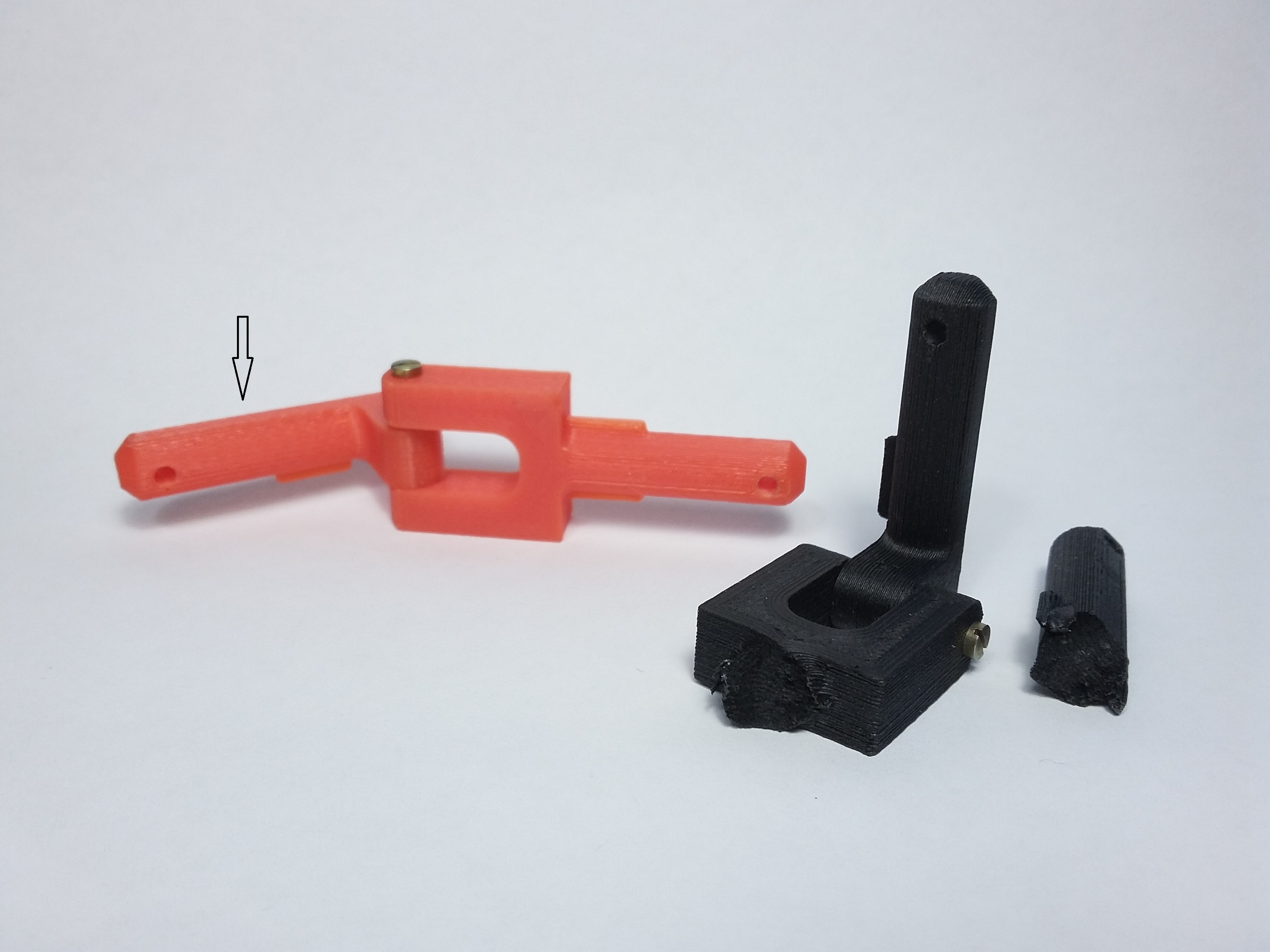 rád bych se podělil s mojí první zkušeností s karbonem. Byl jsem požádán o výrobu pantu dvířek šatní skříně (cca 50x50cm, tl. 18mm dřevotříska). Původní zlomený pant byl z nějaké slitiny. Normálně tisknu z PLA a měl jsem i vzorek karbonového filamentu. Pro porovnání pevnosti jsem tedy pantík vytiskl z obou materiálů.