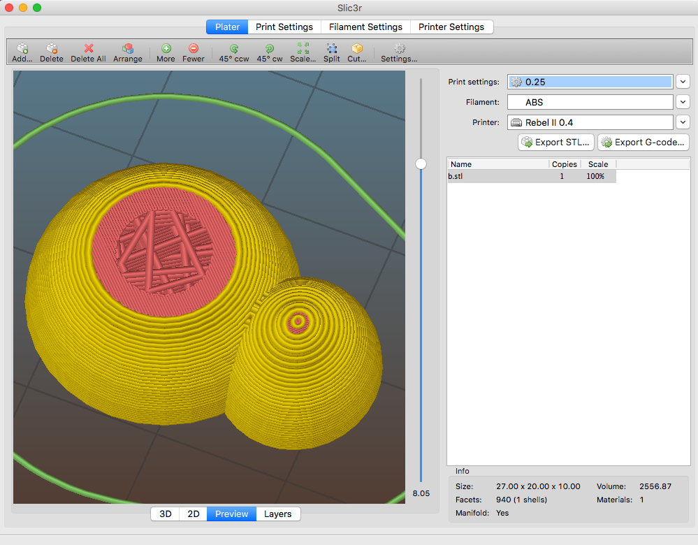 proto mi to nedalo a nakreslil jsem ty dve male kopulky. ve slicu vygenoval a vyslo mi z toho ze on mi na vrsek dava plosky mimo perimetry. proc? proc je ndea az do kraju aby se to chytilo. Proc snek z vystavy tisteny na rebelovi ma 2 perimy, je duty s vrstvou 0,25-0.3 a je krasne uzavreny bez jedine skulinky? v necem to byt prece musi. zkusil jsem 4 ruzne verze sclivu 1.1.7. 1.2.5, 1.2.6 s 1.2.9 s vsechny to delaji skoro totozne.