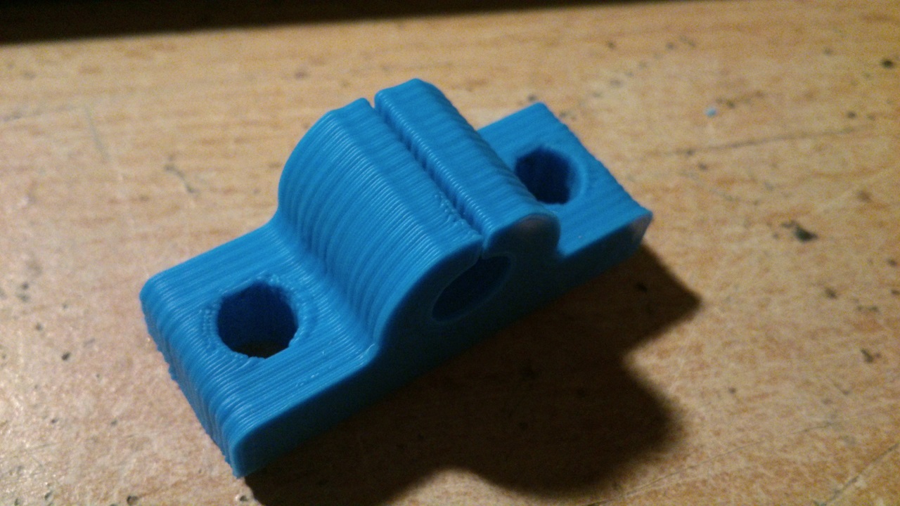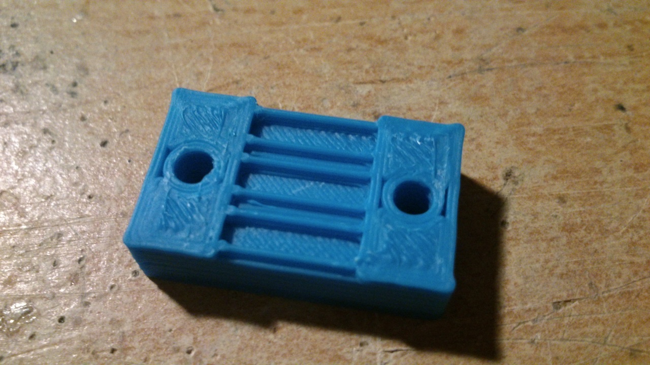 Tak už jsem spokojen, musel jsem vytisknout nový třmen na hotend, protože jsem ho párkrát rozebíral a závit už moc nedržel. Vytiskl jsem to z ABS a naprosto v pohodě, výsledek super, na zrcadle to drželo jak přibité, šlo to sloupnout až při nějakých 40°C, ale to rozhodně nevidím jako nevýhodu, alespoň tam pořád zůstane lak a není třeba pořád dávat nový.