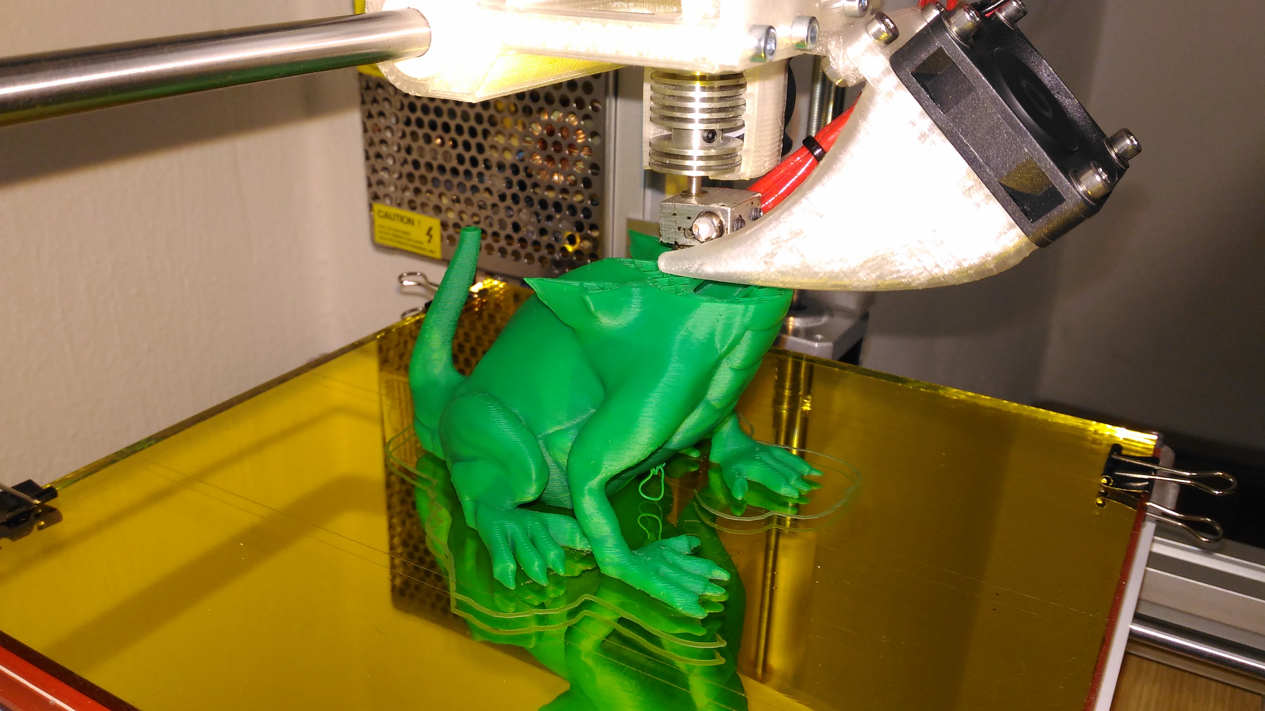 Shodou náhod jsem včera tisknul reparát, tělo krk a hlava mi vyšlo parádně. Bříško, přední nohy a konce křídel se mi zase trochu rozpaplaly. Navíc mi to nešlo servat z podložky, tak to mám teď na pět částí