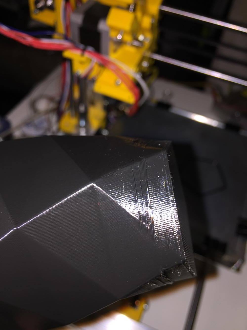 čaute, začínám s tiskem a chtěl bych se zeptat co by mohlo způsovat to co je na fotce? je to jen dole. tisknuto petg první vrstva 245 a pak 230, hb 85 a pak 75