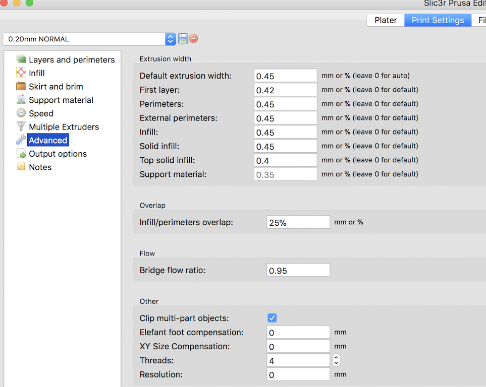 -Ako slicer použivam REPETIER Host V1.6.1 a ten použiva nastavenia zo slicru, určite vieš vo co go. Slicer som nikdy na slicovanie nepoužival takže netušim ako to je s tym cut, gapinfill, atd,.. naozaj neviem.