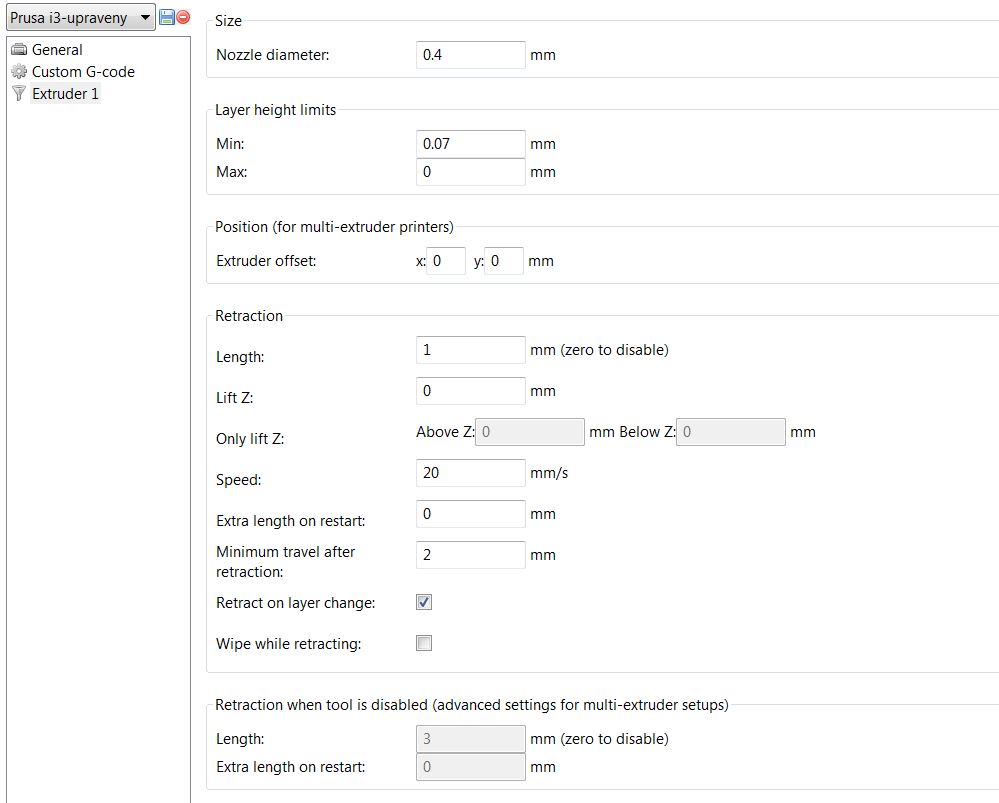 Ajaj...koukáš do kolonky pro retrakce na víceextruderové tiskárně - přímo je to tam napsané, byť anglicky. Ty se zajímej o 6 čtvereček shora. Teď je tam jednička.