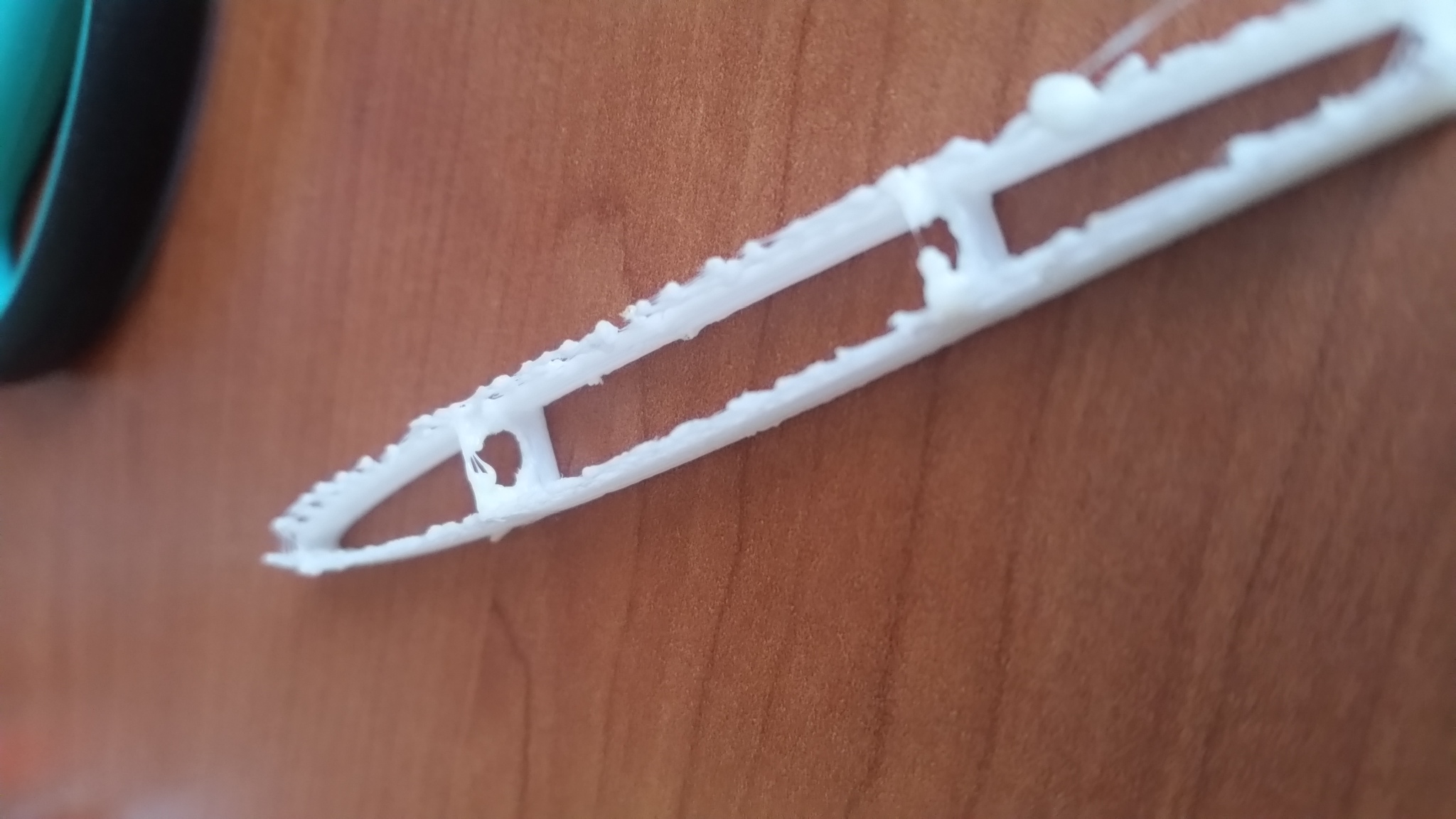 Ahoj, cim muze byt to ze me to dela takove jehlicky po chvilce tisku ? + Jsou pokazene ty kruhy vevnitr kridla material ABS 255/110 stupnu perimetrs 60 small perimetrs 30 bridges 10...