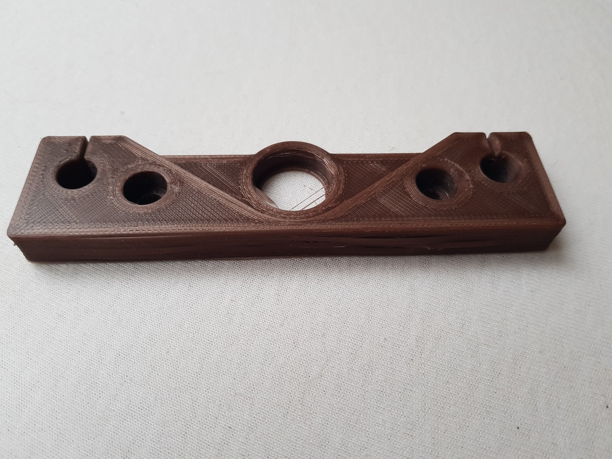 Snažím se teď vytisknout díly na sCUBE. Nakonec nejrozumnější na odladění mi přislo laborovat s dílem který nahoře drží trapéz a vodicí tyče. Je relativně nízký a dá se na něm pohrát se smrštěním.