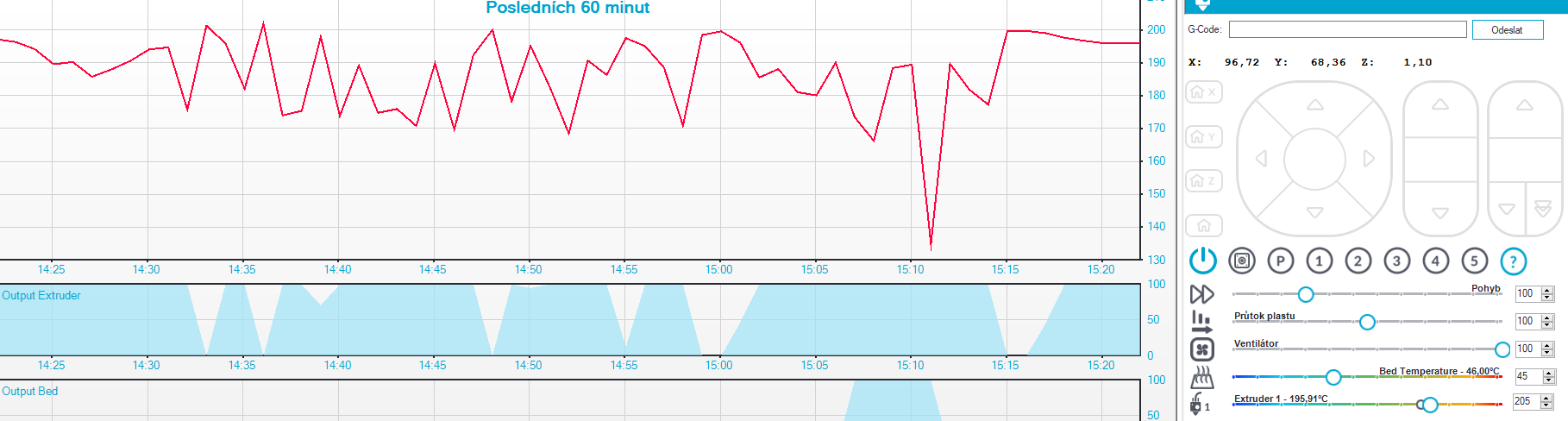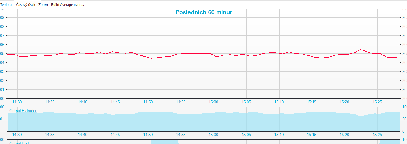 poznatek: kdyz stojim s hotened a rucne vytlacim 50mm, teplota je v lajne, a dratama muzu kroutit jak chci - nechapu. ofuk vzdy na 100%