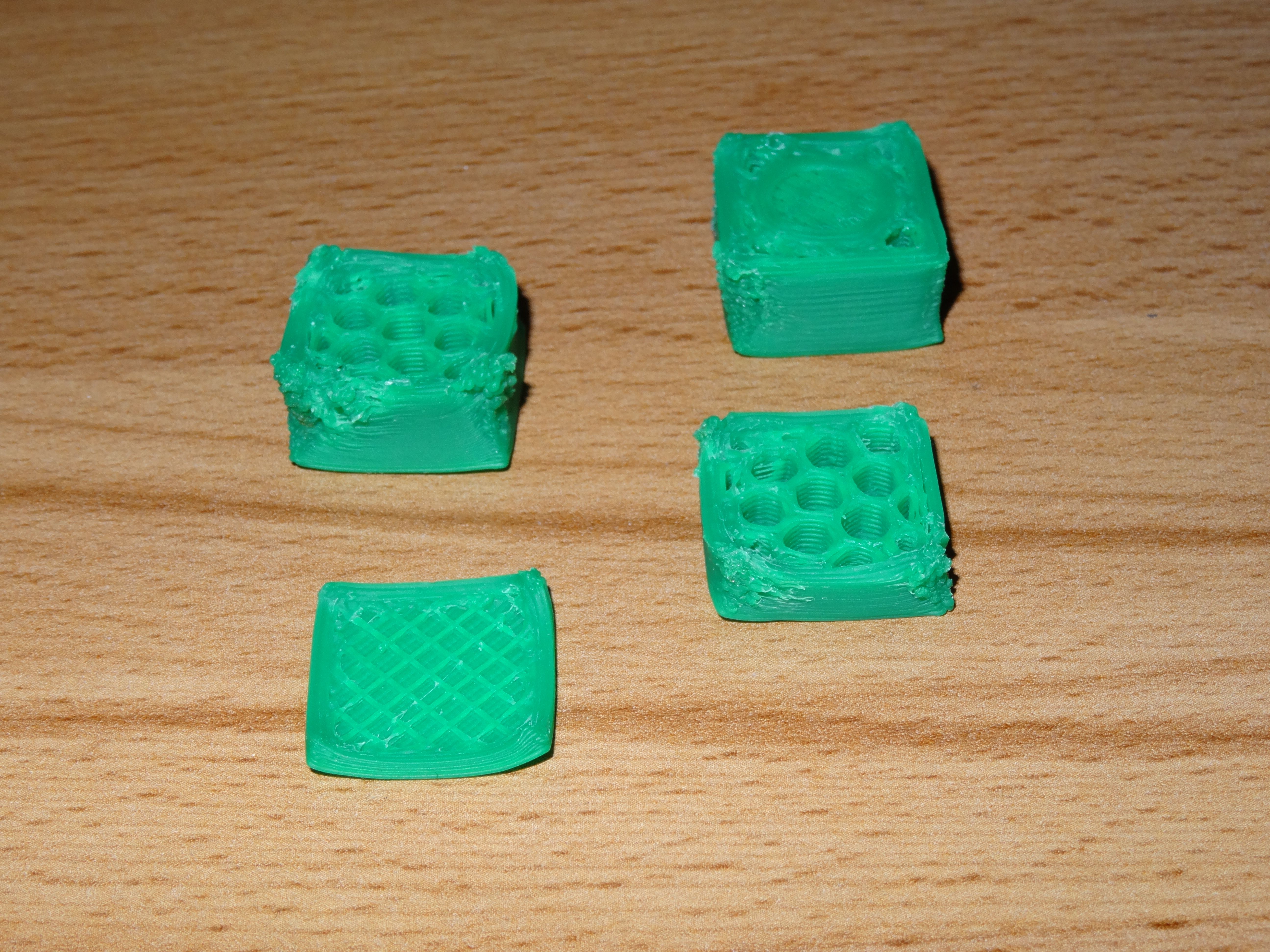 Hodně mi pomohlo vysvětlení rychlost vs. chladnutí. Prvně jsem experimentoval s tiskem více objektů současně a potom s rychlostmi. Výsledky jsou o poznání nadějnější: