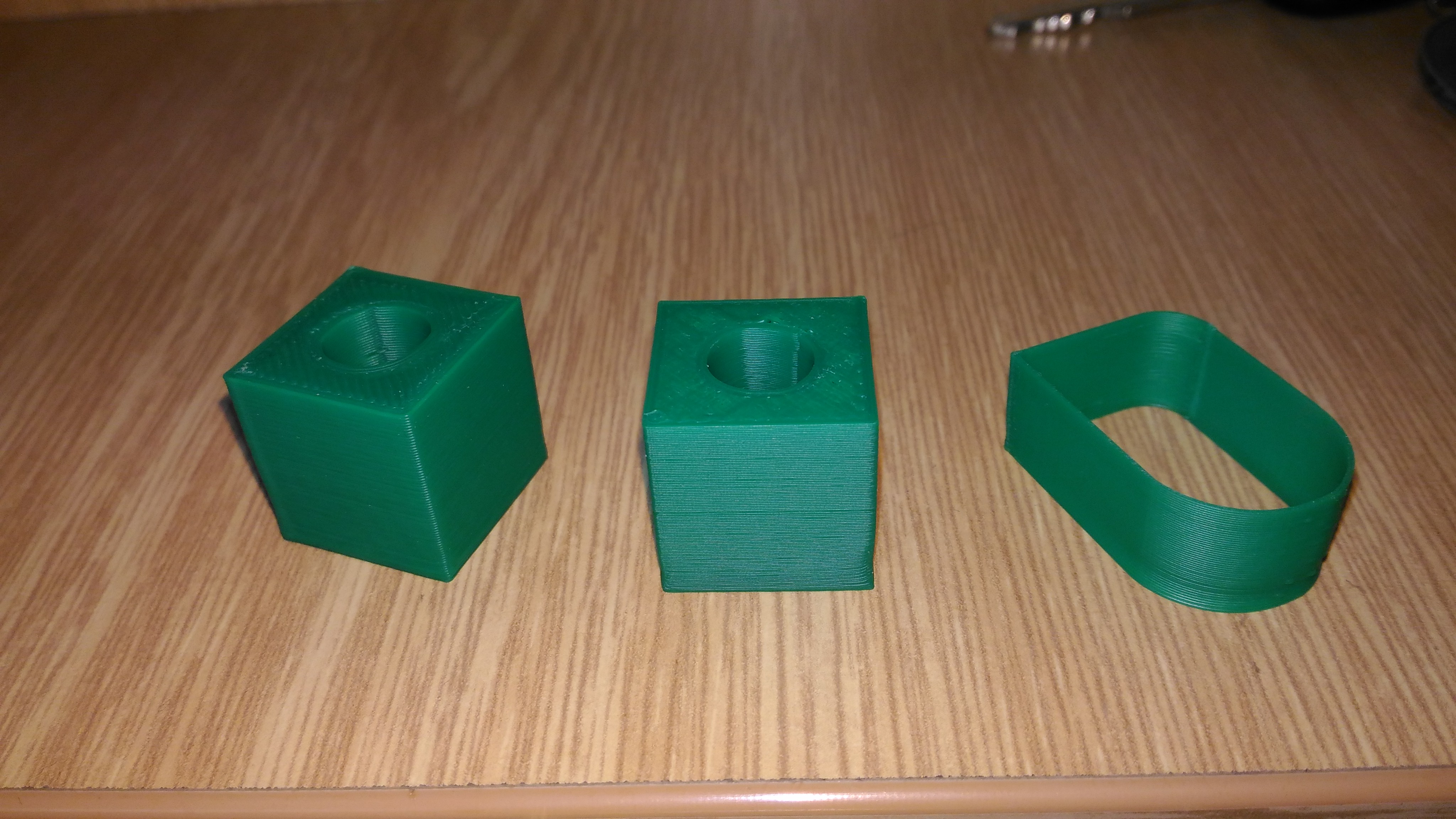 Dle mých "velmi malých "zkušeností s tiskem z materiálu ABS Mladeč viz. vaše poslední fotka tří objektů ( kde prostřední je krásně natočen na pohledové hrany) ,je jasně patrný propad směrem do vnitř výtisku hned nad plnou spodní vrstvou a to v délce asi 3 mm vrstev v Zetku - někdy je to na jedné straně , jindy až na třech stranách ,ale vždy přesně v tomto rozpoložení výšky . Když jsem začínal ,tak mi řekli to neřeš je to prostě Mladeč a ten To dělá ,kup si něco jiného . Abych to zbytečně nepitval - je to vlastní konstrukcí tiskárny a vlastnostmi onoho materiálu Mladeč ( skutečně jen Mladeč má tuto neblahou vlastnost ) .
