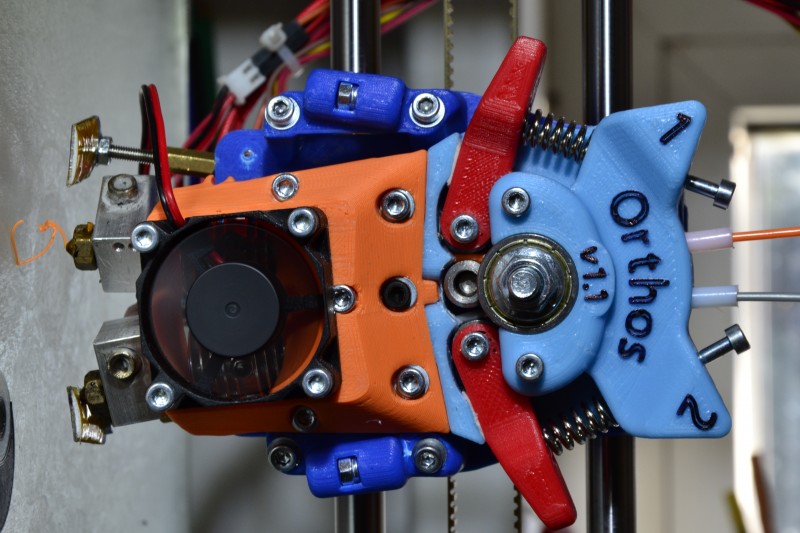 Další věc co bych chtěl dořešit je nějaké tlačítko na rámu tiskárny, které by po zmáčknutí změnilo aktivní hotend. Hodilo by se to kvůli výměně/zavádění filamentu. Nevím jestli by to šlo nějak softwarově vyřešit, budu rád za nápady. Ještě doplním, že aktuálně používám Marlin 1.1.2.