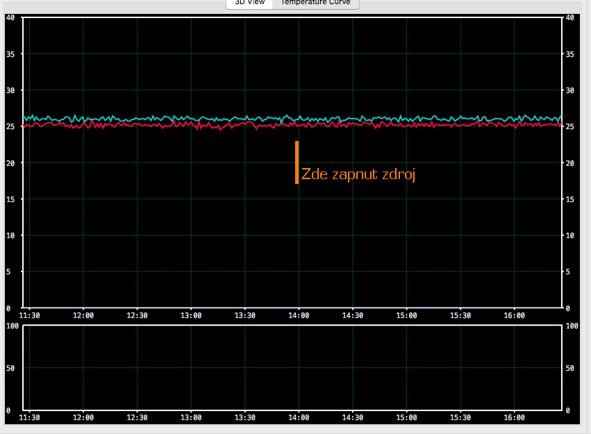 Výměnu zdrojů jsem dělal proto, abych viděl, jak stabilní mají výstup, což se projevuje na měření teploty, která je samozřejmě konstantní za studena. Tiskl jsem kostku při oscilující teplotě 49-50°C. Perioda trvala cca 20 sekund, a bylo patrné vlnkovatění v ose Z. Poté to samé bez vytápění HB, a vlnky zmizely. S vyhlazením (částečným) napětí z regulátoru jsem po PID kalibraci HB tiskl již bez problému. Na tento problém jsem narazil již před rokem, kdy jsem použil PID hodnoty z 20x20 cm na 30x20 cm HB, a vlnkovalo to stejně. Trvalo mi dva dny, než jsem přišel na to, co bylo špatně. Prostě věřte nevěřte, je to tak.