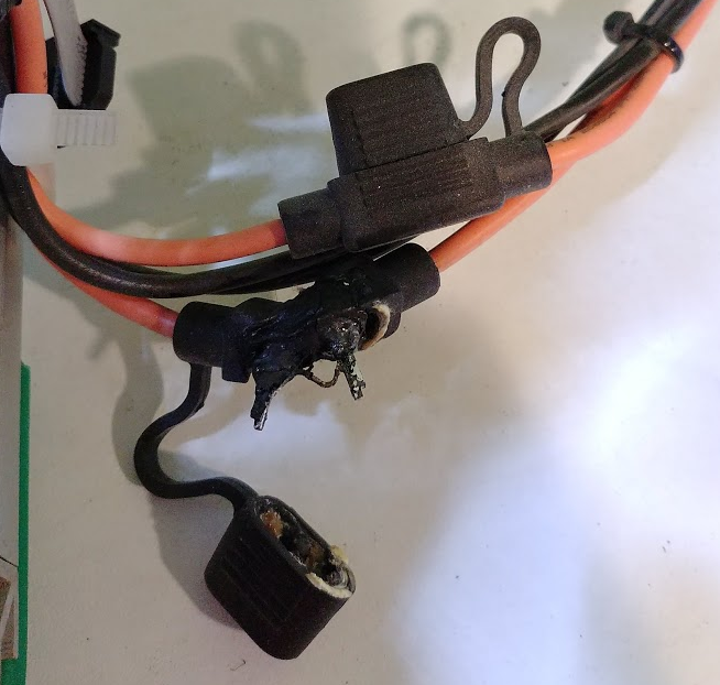 Používám na přívodních kabelech nožový mini pojistky v pouzdru. Jedno to nějak nezvládlo a rozteklo se. Pojistka jako taková je pořád průchozí.