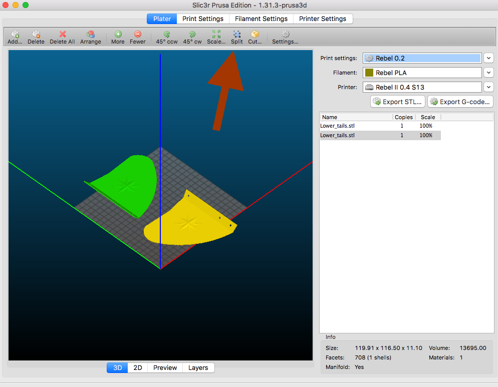 Stačí ve Slic3ru zmáčknout Split