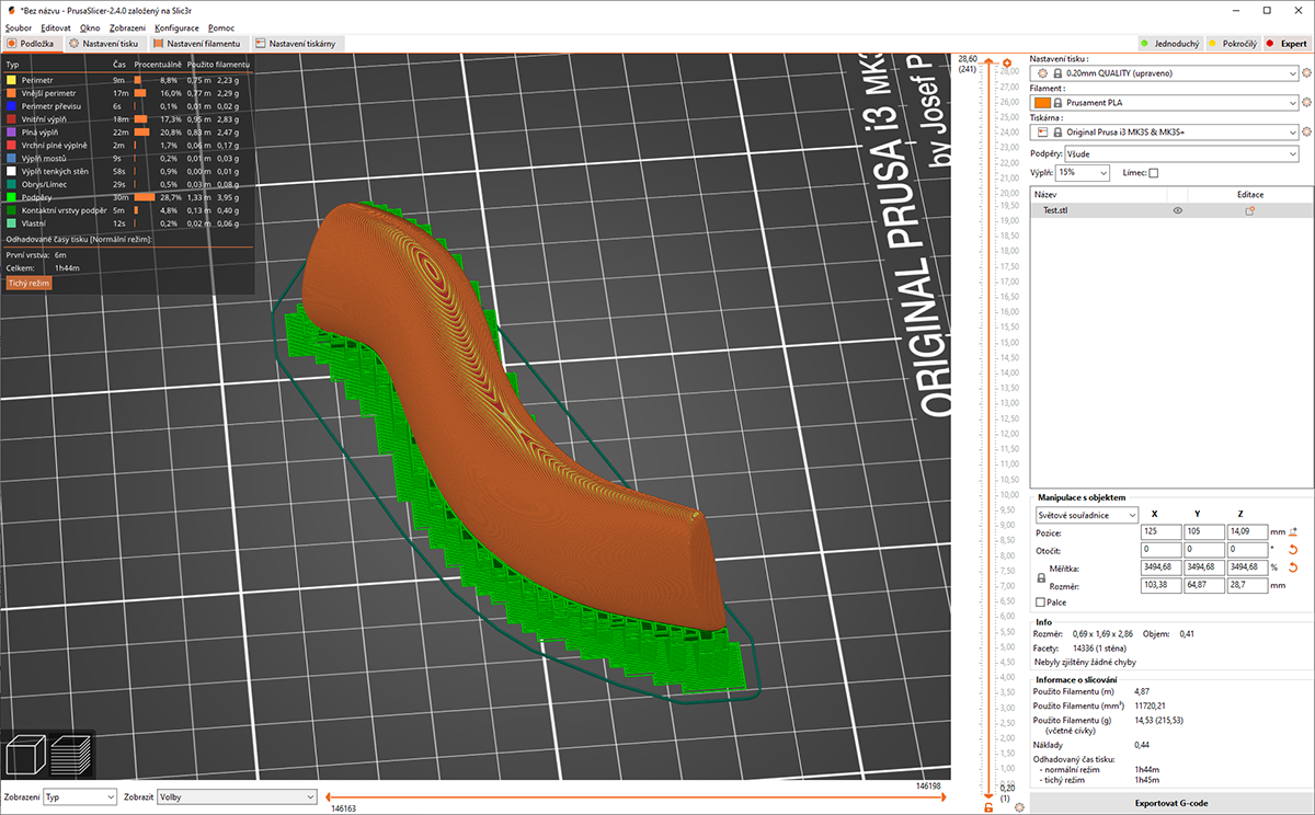 Hehe, já jsem tohle shodou okolností tiskl asi před 3 lety a je to přesně jak píšou všichni. Tvar je pro FDM naprd sám o sobě, plus je tam třeba udělat vedení kablíku a vychytat ty "čepy" pro otáčení aby to rozumně fungovalo. A další práce s úpravou po tisku aby to nějak vypadalo. Dělal jsem to pro známýho za flašku, s domluvou že když prasknou tak prostě prasknou (a praskly po 2 měsících denodenního užívání, před tím se stihly i ochodit ty čepy, takže to na hlavě sedělo dost všelijak). Chtěl jsem si tehdy hlavně vyzkoušet Inventor, se kterým jsem začínal modelovat. Dneska bych to udělal spíš SLAčkem, ale musela by se najít vhodná (čti drahá) pryskyřice. Model bohužel nemám, odešel do věčných lovišť s nezálohovaným diskem