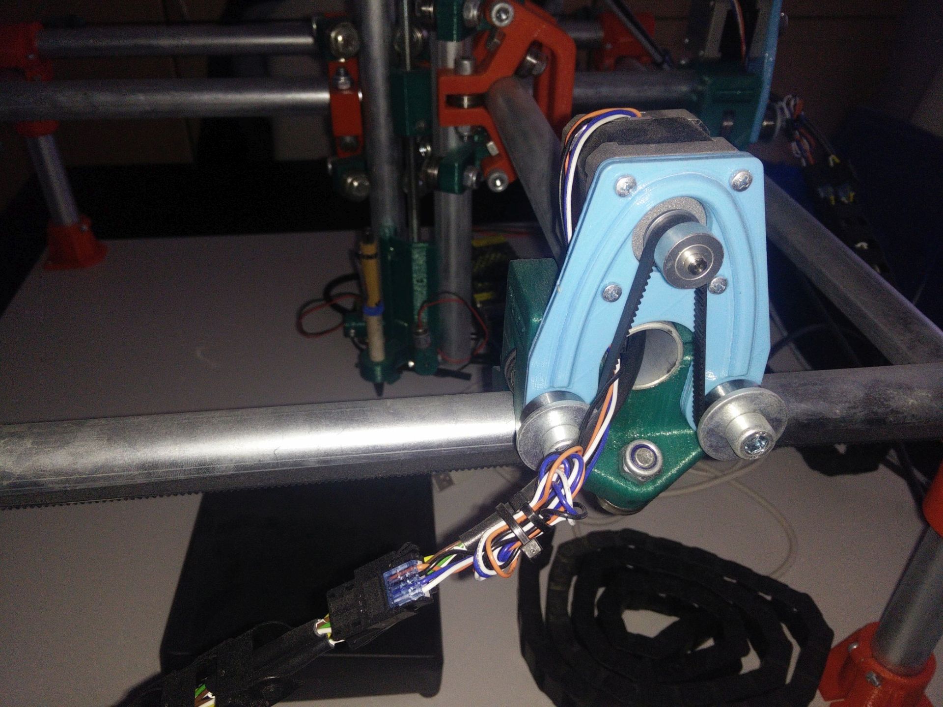 Deska 70x70cm lamino ohraněno abs lištou. Trubky 25mm z oceli následně pozinkované. Motory Microcon SX17-1005QCEF. Kabely teflonové ohybem nezničitelné OLFLEX ROBOT vedené v energořetězech. Zdroj 12V - 5A. Ramps1.4 s 32 krokovými drivery DRV8825. Ložiska 608 2Z vyrobené v České republice. Univerzální držák. Připravena krabice pro arduino, ramps a display (ten jsem zatím nekoupil). Více na fotkách. Přidám ještě nějaké konektory co mi tu zůstali navíc. plocha pro frezovaní(tisk,laser) cca 50x50cm. Nainstalovaný firmware Repetier.