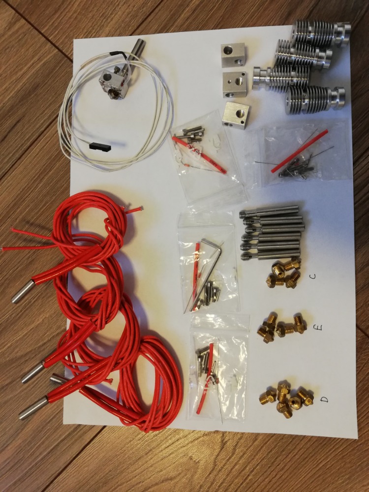 Prodám díly na hotend 3dráty viz foto. nevyužité zbylo z pokusů a plánů na stavbu. Nic nebylo použito krom toho co je sestavené. + Přidán ještě jeden chladič + topné těleso než je na fotce