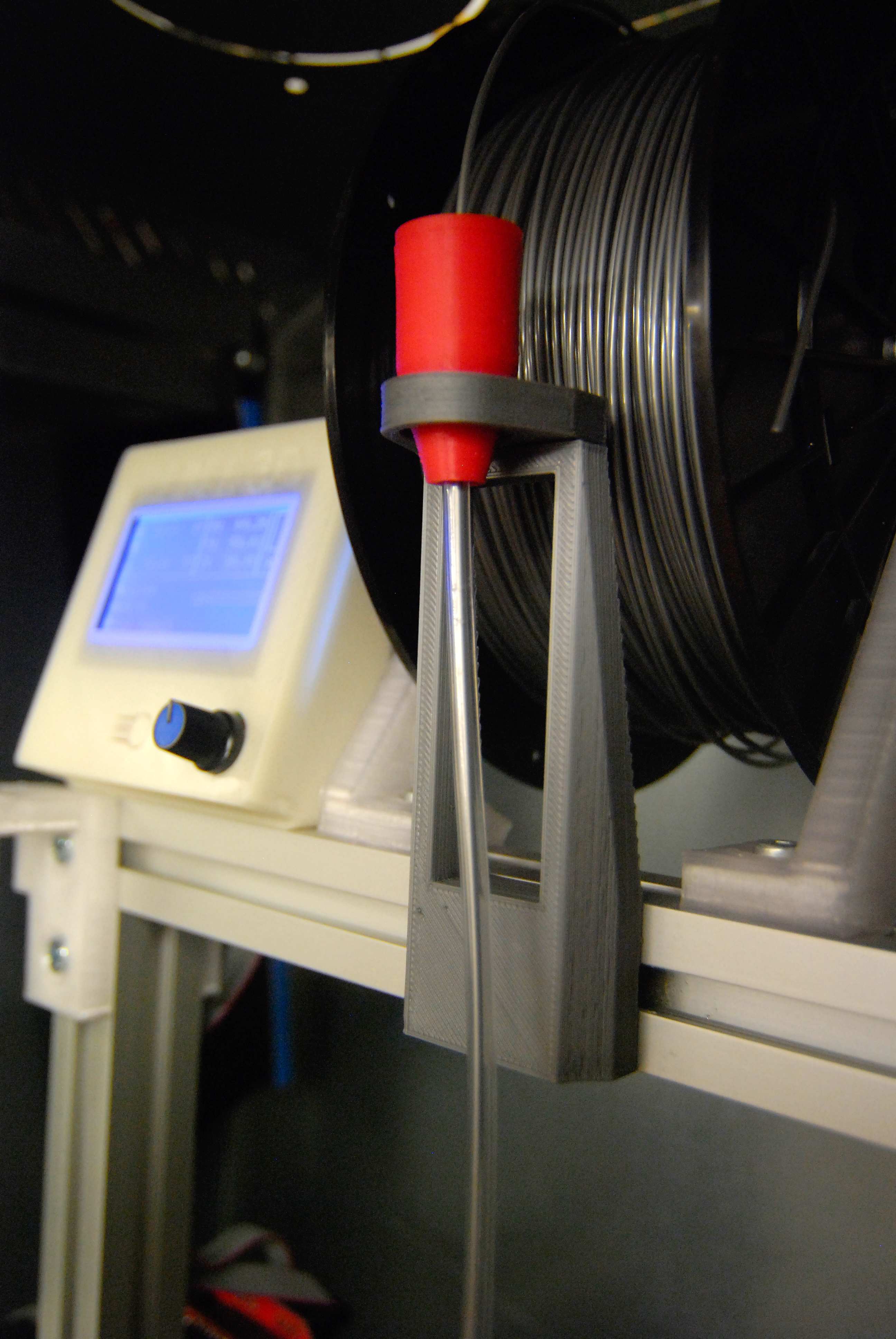 Nechal jsem se inspirovat a vytvoril to same v odlehcene forme. Drzak se prilepi na zplostelou stranu filament cleaneru.