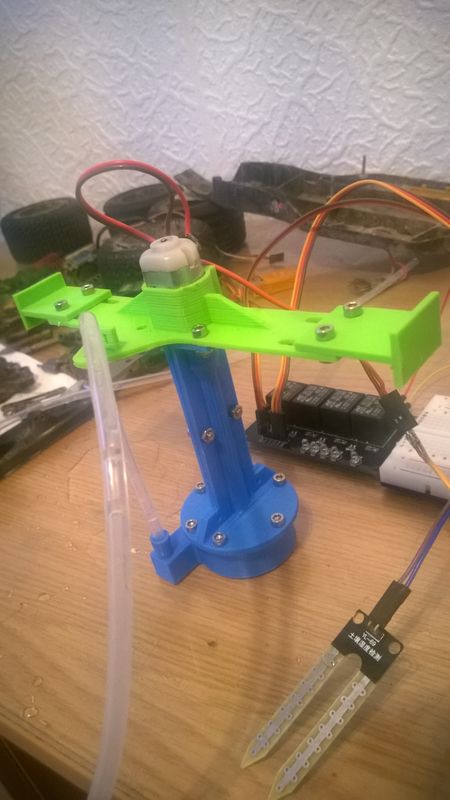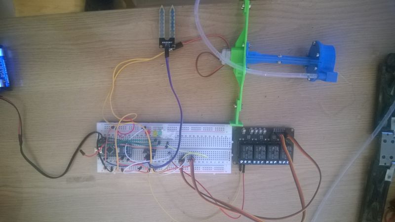 Další využití pro Arduino. Automatické zalívání. Senzor snímá vlhkost půdy, když je sucho zapne se čerpadýlko. Měl jsem to rozdělaný už nějakou dobu, ale teď jsou přednější jiný věci, takže je to zprovozněno. Plány byly poněkud jiné, ale aspoň tak