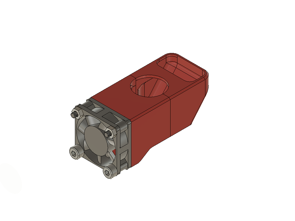 Zdar, udělal jsem držák ventilátoru 30x30 pro rebel mod který odvádí vyfukovaný vzduch směrem nahoru. Vypozoroval jsem že je to vhodné u tisku z ABS když máte víc věcí na stolku. Klasicky větrák fouká na součástky které se zrovna netisknou a často se mi stalo že začali praskat. Tohle tomu zabrání.