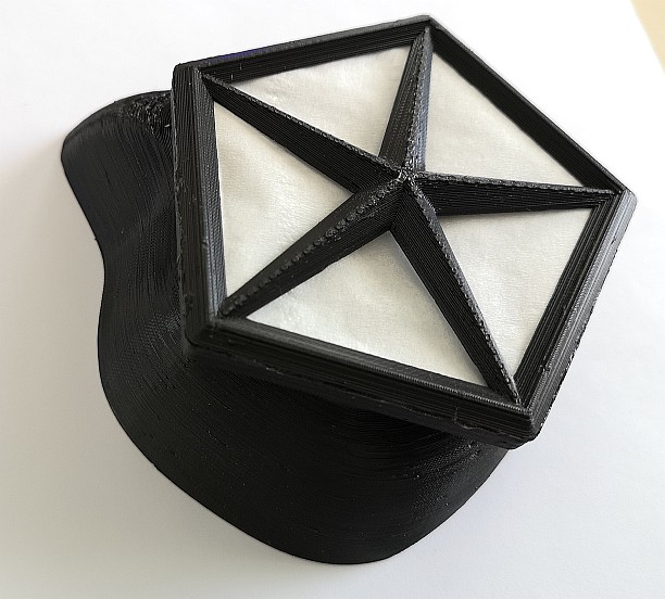 Pozor, podle mě má většina masek na internetu chyby v konstrukcích komory pro filtr. Nepočítají s nutností utěsnit materiál filtru, aby vzduch neproudil kolem jeho okrajů.