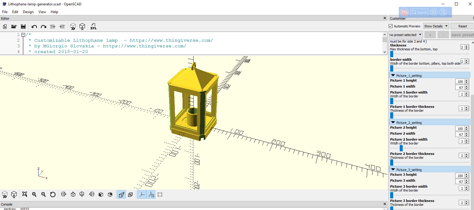 Zatial som vygeneroval a vytlacil dve lampy fotky pridu tam este.