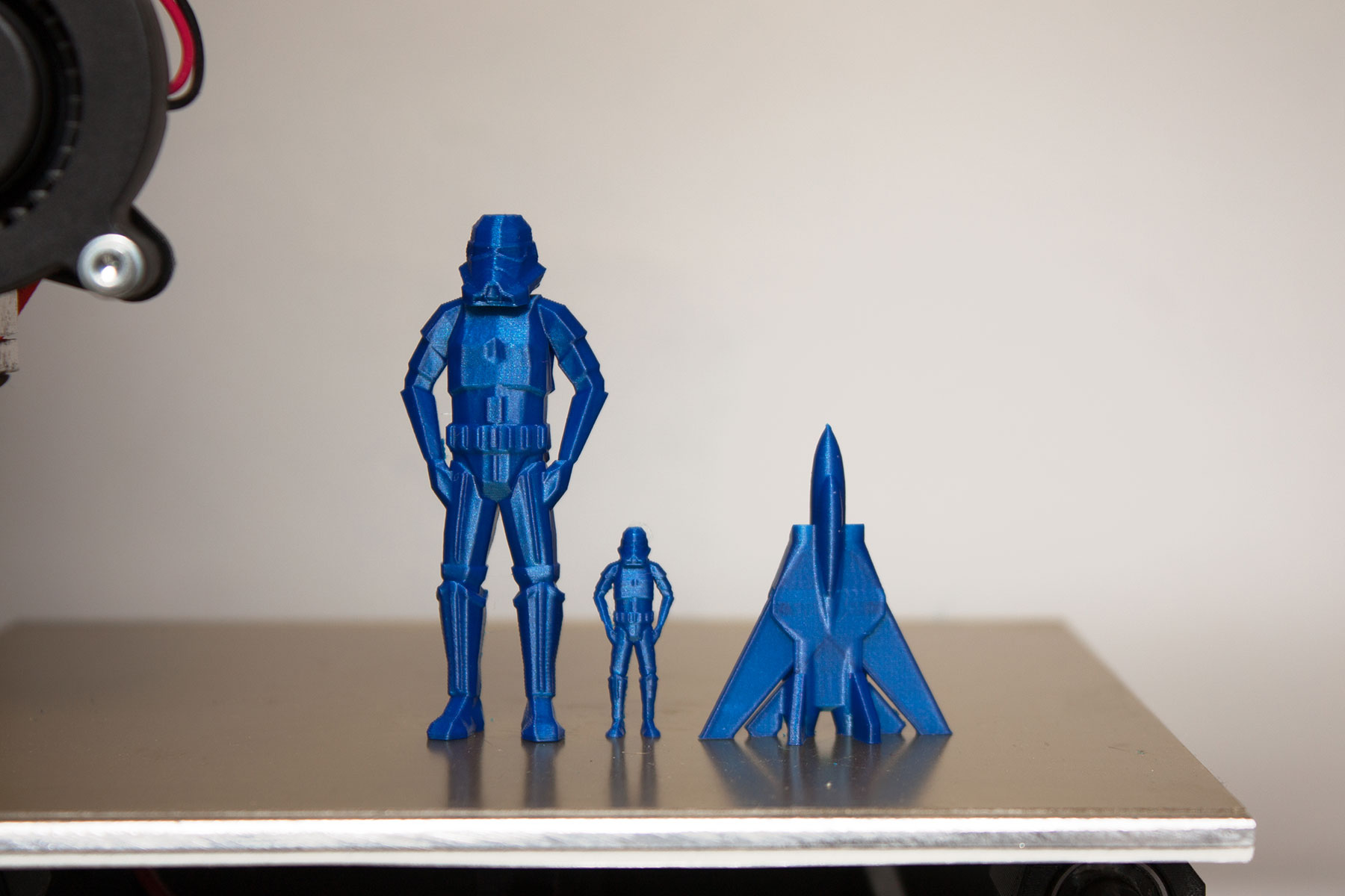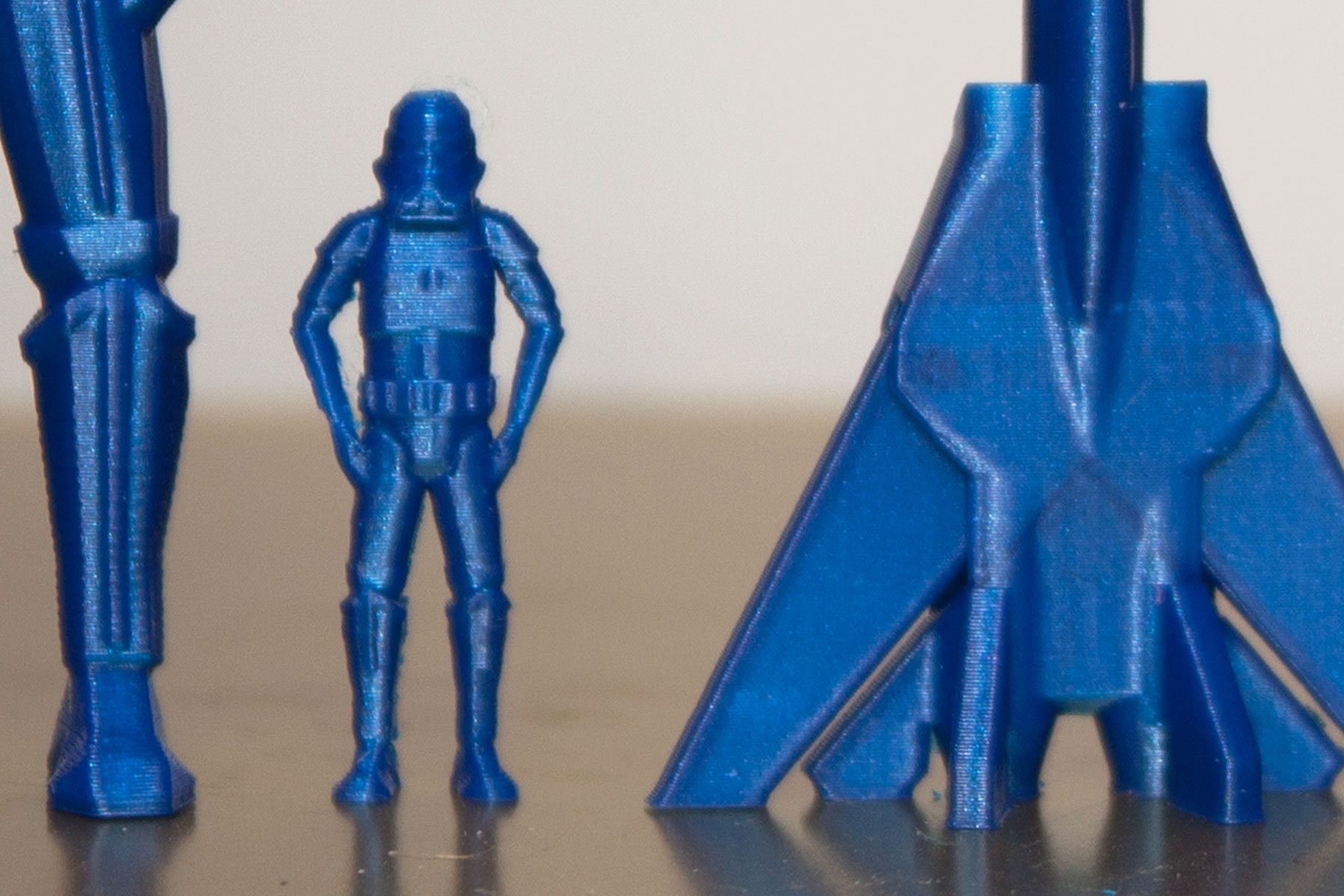 Detail tisku, větší figurka má 63 mm. malinká 25 mm, a letadlo 38 mm.