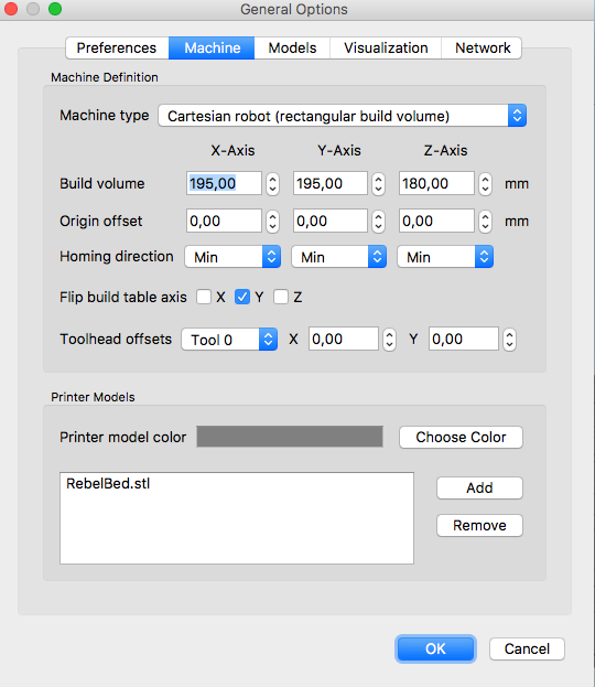 Bed model pro Simplify3D. Zatím to není kompletní, ale už "funkční".