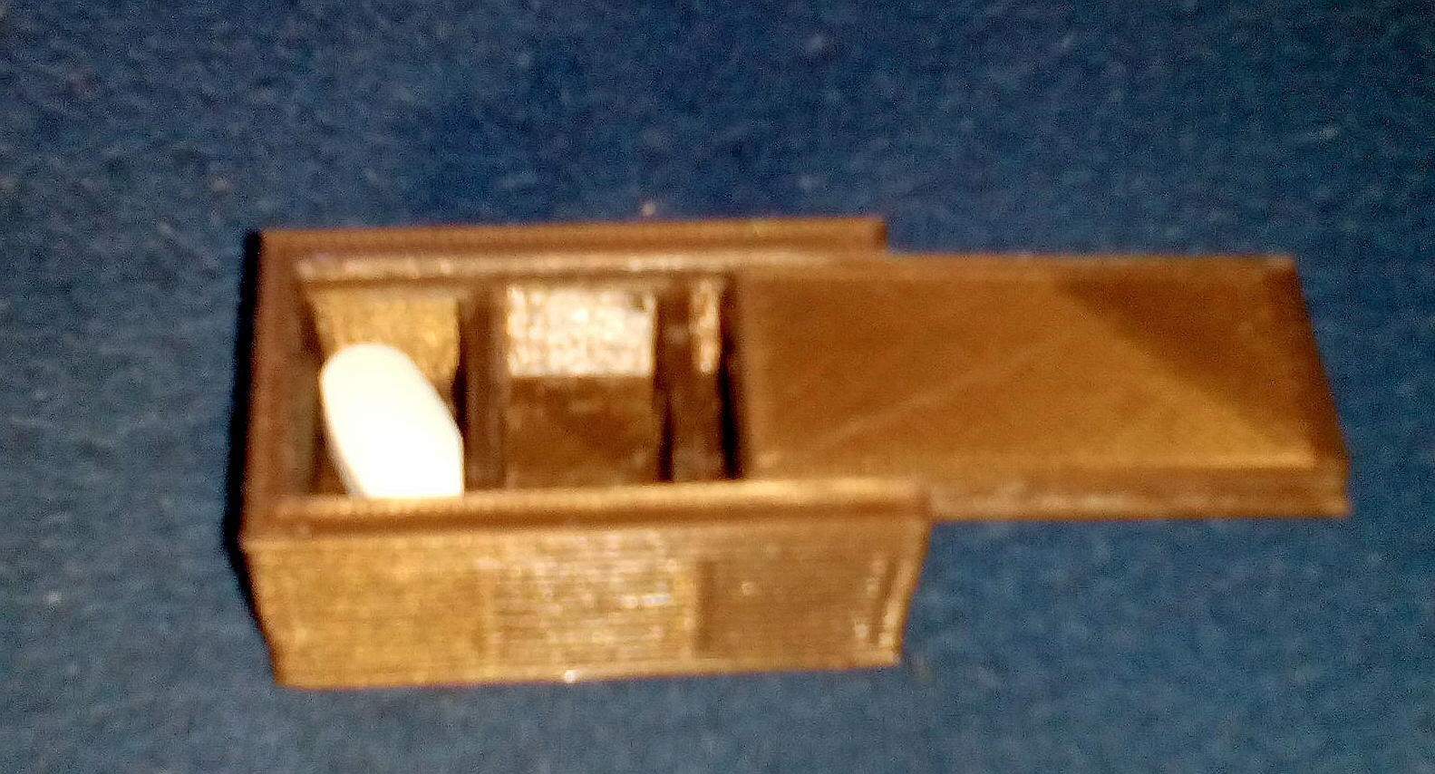není to pořádně začištěný (podpory), ale v reálu hezčí (PLA-prej bronz).
