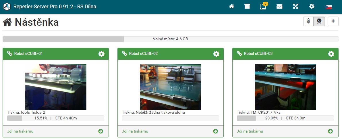 Kamery jedou po WiFi v režimu jednotlivých .jpg snímků (stream ten FW podporuje pouze pro jednoho klienta) a RS je načítá po 1s. Pro kontrolu bohatě dostačující, nemám to místo televize