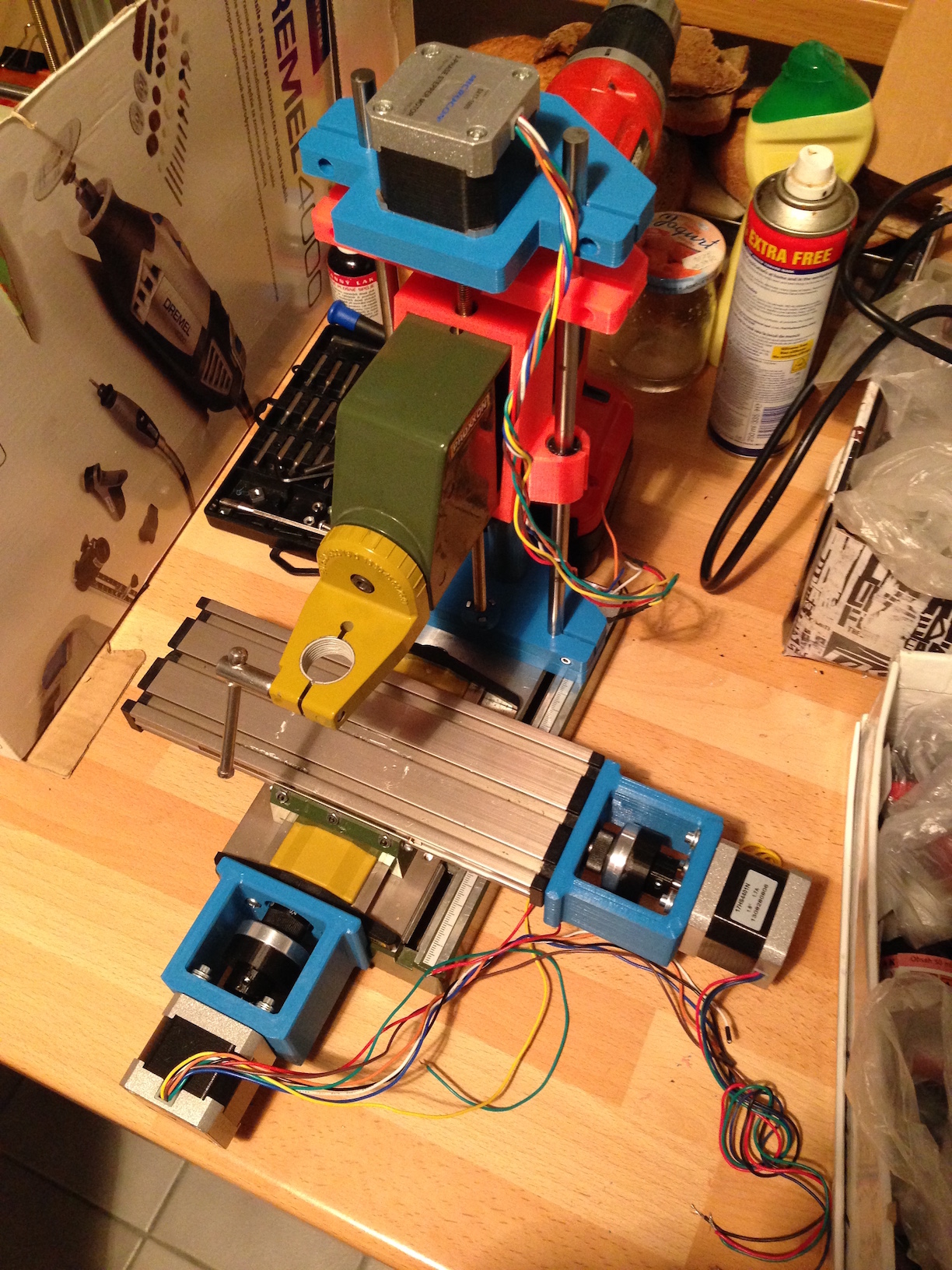 Parádní práce a skvělý nápad, jak využít dostupných součástí, jako posuvy a stojan. Palec nahoru! Taky jsem stavěl frézku hlavně na plošňáky, ale podle tvé je to zbytečně složité. Postavil jsem dle