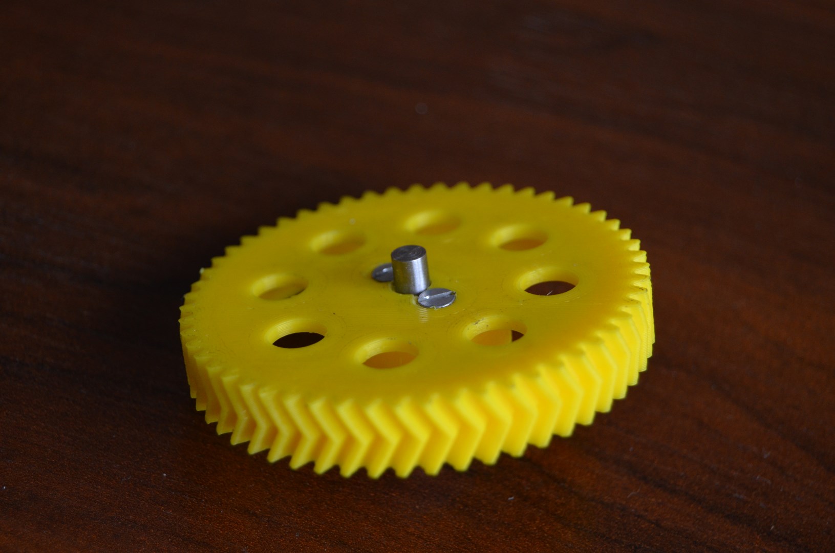 Do velkého ozubeného kola přijde vložit řemenice T2.5 do které jsem navrhl pro zajištění vyvrtat z čela 2 dírky a říznout M3 závit.