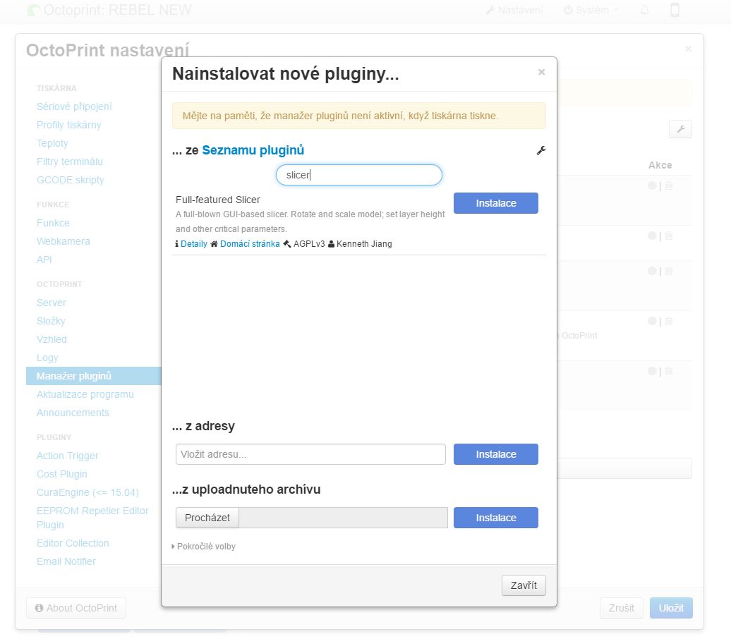 Octoprint má nově plnou verzi sliceru, ve které se dá většina věcí nastavit lépe než v tom základním integrovaném. Plugin se vyvíjí a autor pracuje na dalších rozšířených vlastnostech. První tisky s ním jsou v pohodě a bez chyb, jen tam zatím není úplně detailní nastavení. Pro rychlý tisk a přípravu modelu bez PC je to ale naprosto dostatečné.