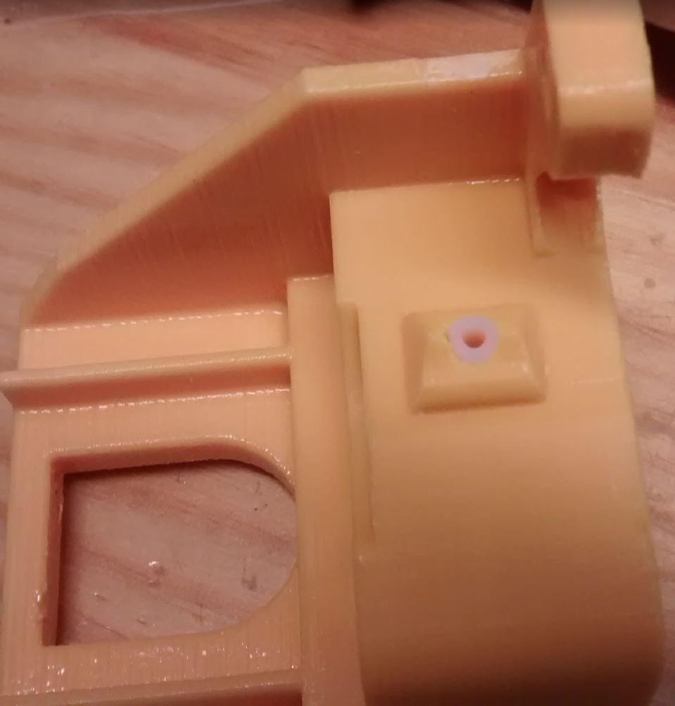 Prikladam drzak extruderu s upravenou dirou na 4.1mm. Staci protahnou vrtakem 4.1, zarazit trubicku, nahore sikmo zariznout, posunout na temer dotek podavace a dole zariznou do rovna. Nahore ma tedy trubicka par mm koukat.