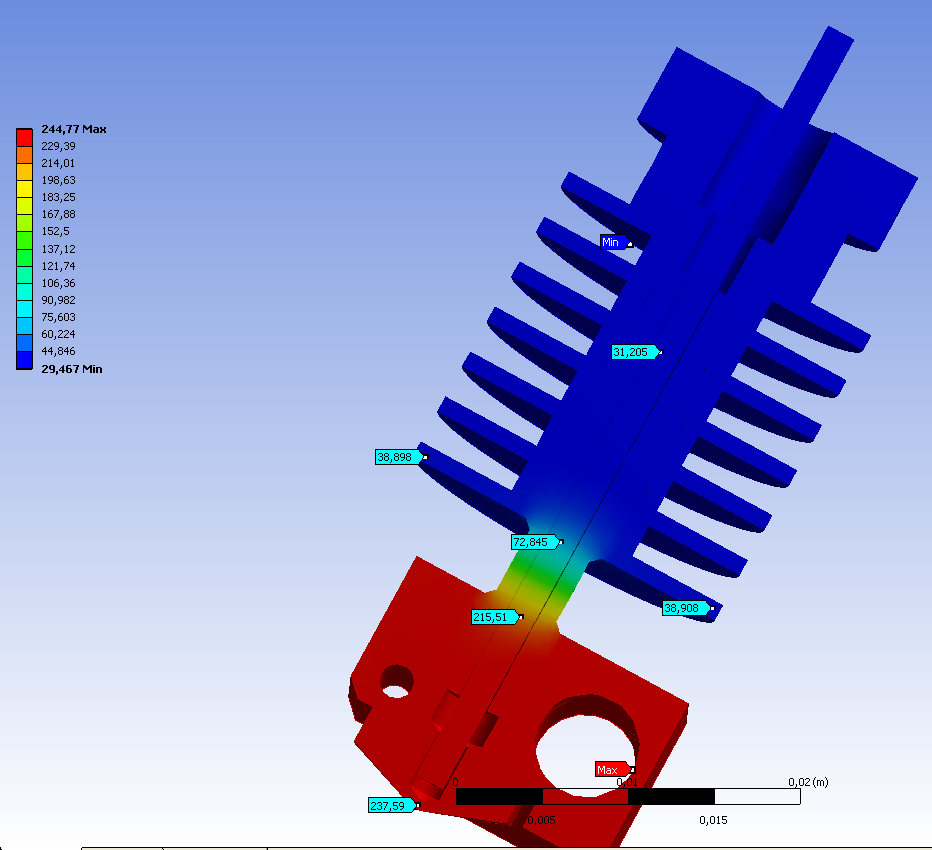 tato je stara, neni tam zahrnuta tepelna vodivost filamentu, ale pokud udelas break z tepelne vodivejsiho materialu (ocel) tak ty teploty na chladici jsou o 70 stupnu vyssi a na vytopeni telesa je potreba dvojnasobny vykon.
