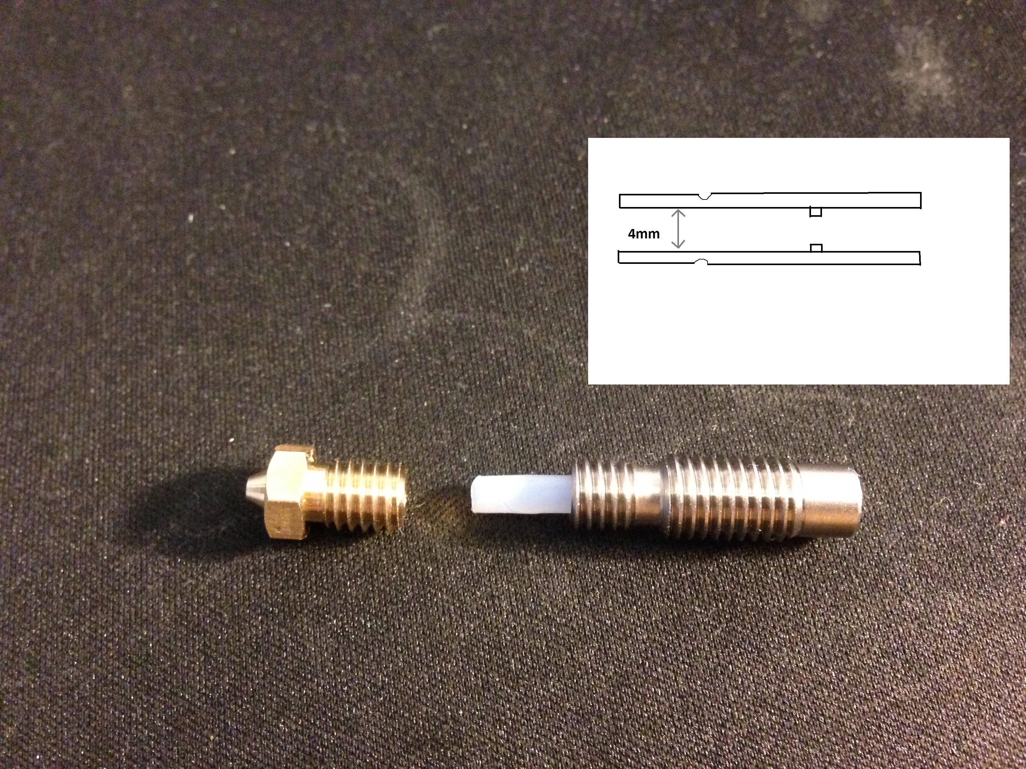 Měl bych mít verzi na 1,75mm filament, ale heatbrake má vnitřní průměr 4mm, kromě toho výstupku na nákresu, kterej má asi 3mm vnitřní průměr. Teflonová trubička se tady zřejmě dává směrem k bloku, jako je to na fotce. Tryska už má normálně 2mm průměr, takže s teflonovou trubičkou to udělá průměr 2mm až do trysky. Co se mi ale nezdá je že ten teflon je na horký straně a materiál se tak bude tavit až v trysce. Zdá se vám todle řešení použitelný? Nebo mám dokoupit originální heatbreak?