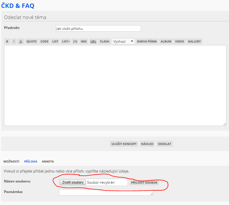 Pokud soubor přiložit nejde, je to buď nepodporovaná příloha, nebo jiný problém, což se také může stát. Pokud to tedy opravdu nejde, napište mi do SZ, až budu mít čas, podívám se na to.