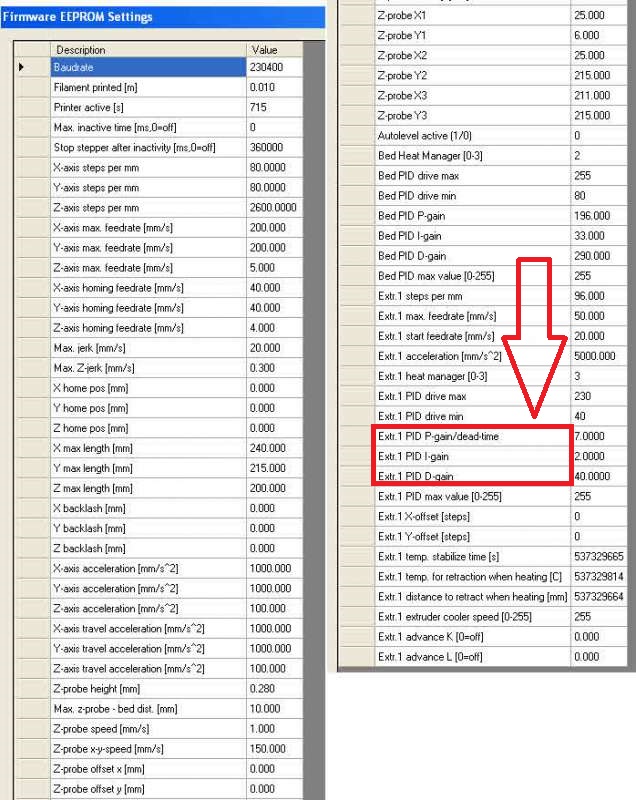 odpíšeme hodnoty (K)P (K)I (K)D a prepíšeme pôvodné hodnoty v eeprom, viď další obrázok.