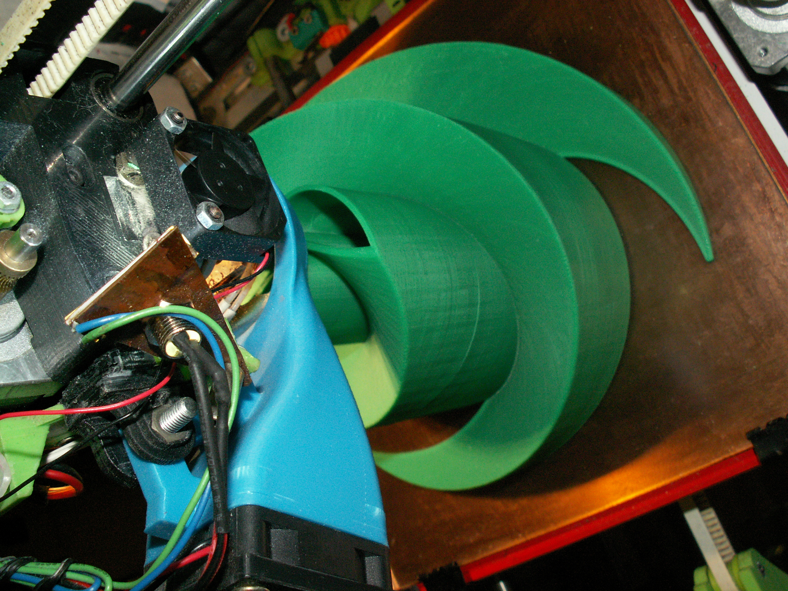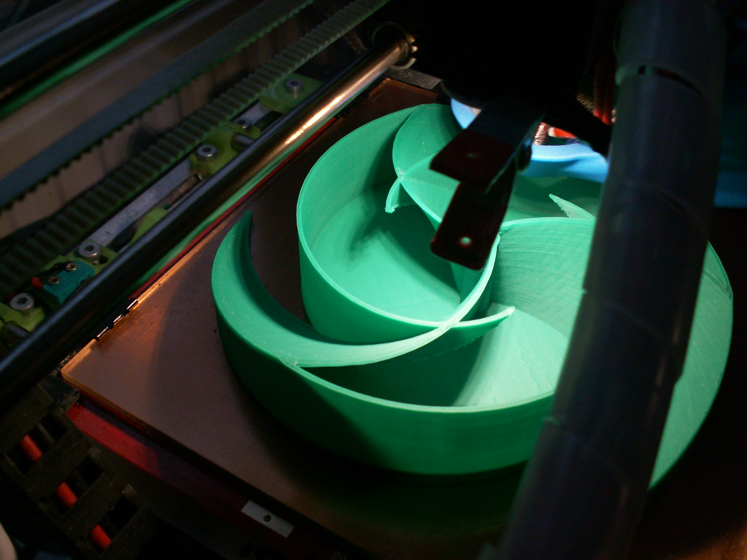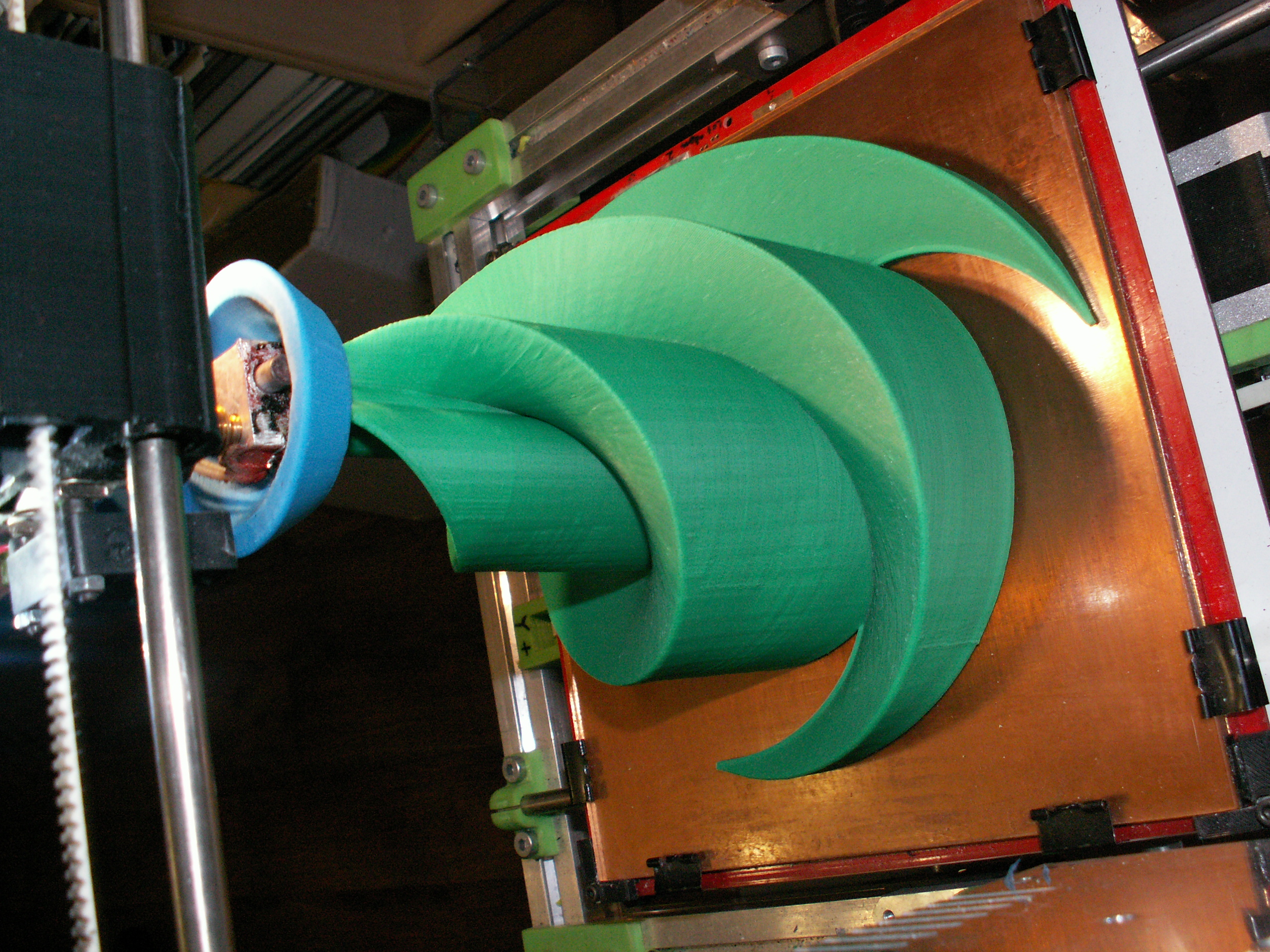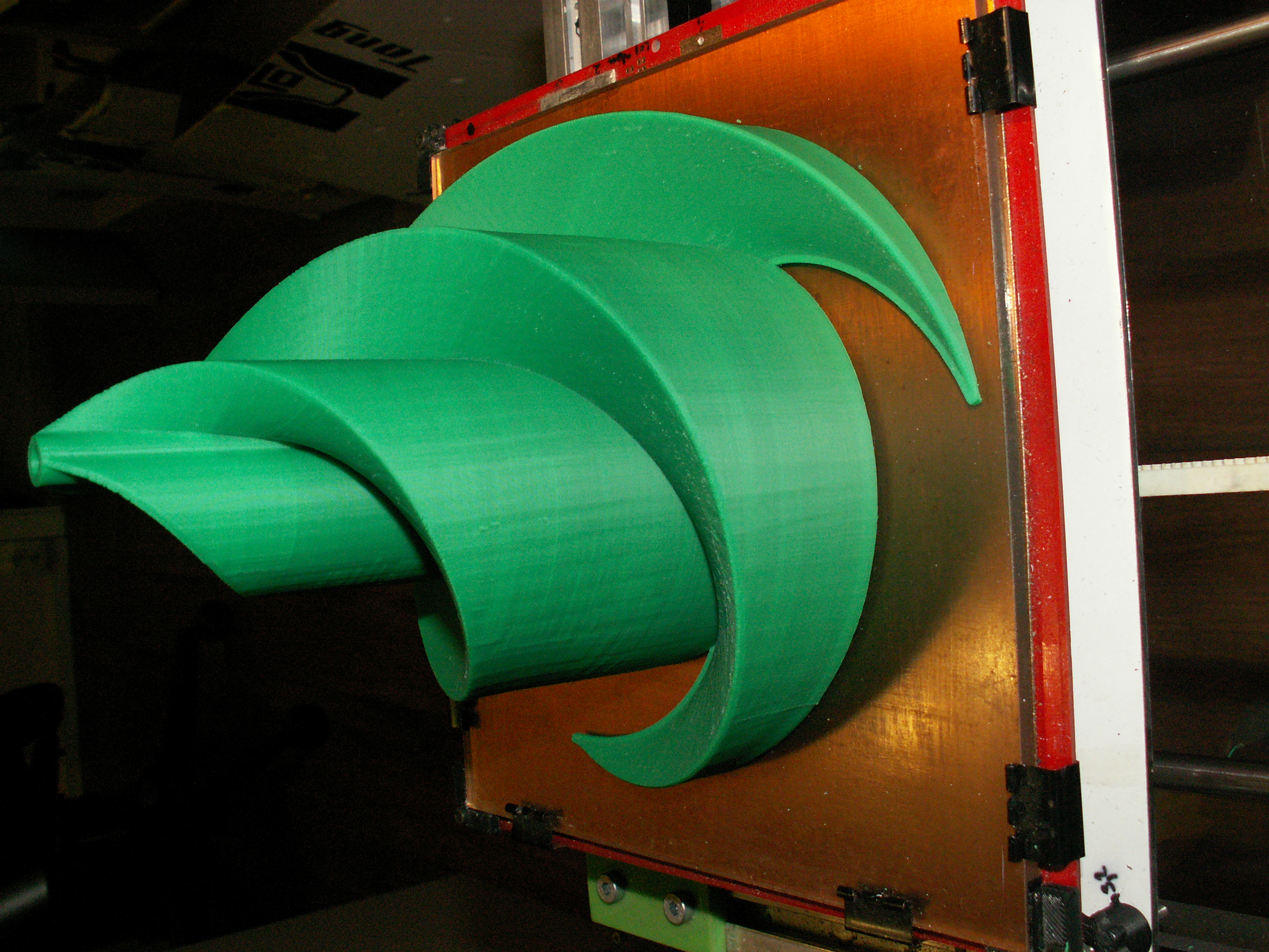 to co považuju za největší problém u tak velkého kusu je pnutí tenké vrstvy (dna ) na stolku a obrovská možnost odlepení + smrštění délkové toho kusu - tisknul jsem to na ABS Juice 3% . síla stěny byla 2 mm všude a nikde žádné výplně - to by určitě popraskalo vnitřním pnutím ( zkušebně jsem vyjel i 1,2 mm ,ale to neodpovídalo požadavku na pevnost pro zákazníka - šlo to snadno zdeformovat tlakem ) .