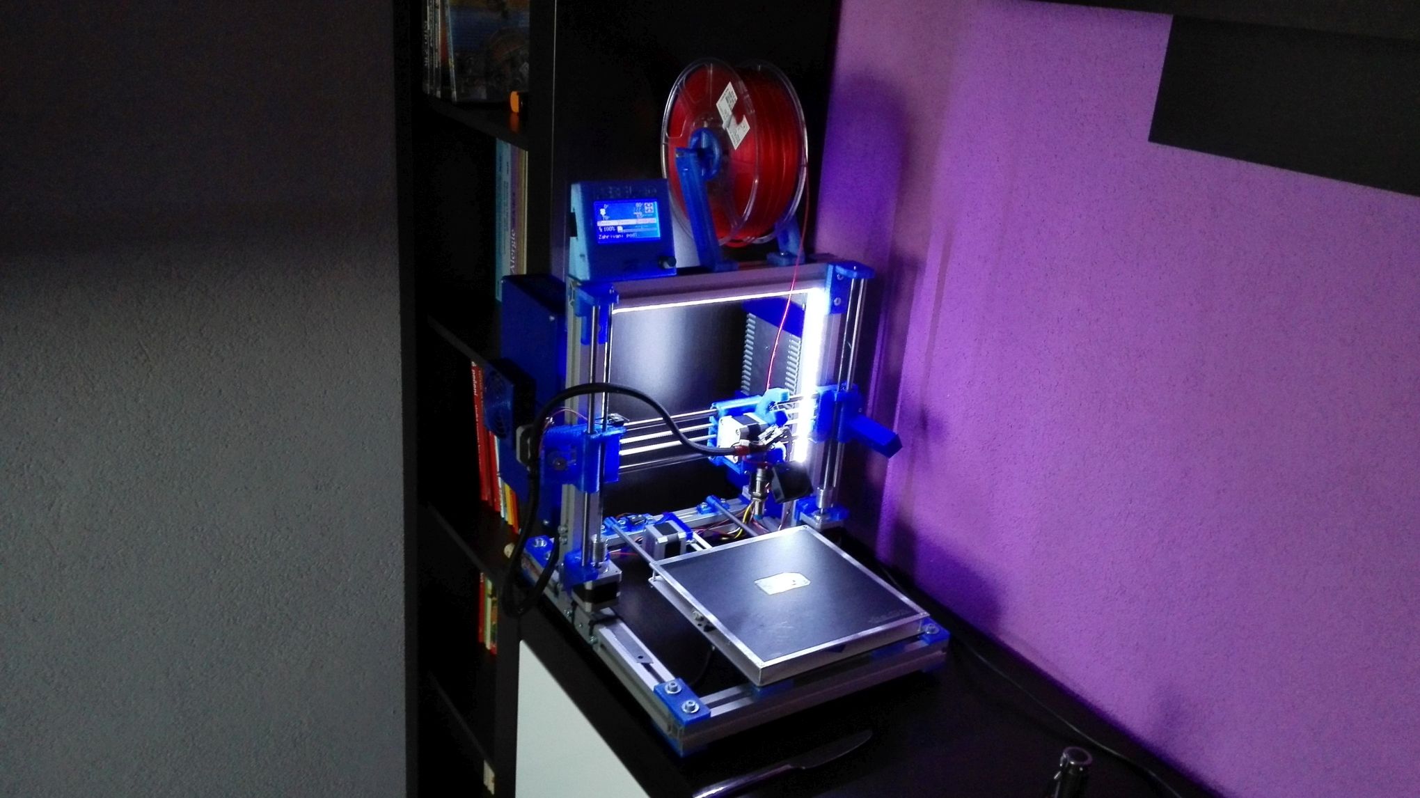 Rebel II HD+LCD (mix. JRC a cinskych dilu), deska GT2560, TMC2130 SPI, 230V hlinikova podlozka, autoleveling, octoprint+wifi+webcam.