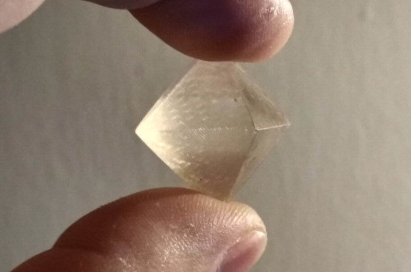 Plný osmistěn, velikost cca 1 cm, plochy přebroušené dohladka jemným smirkovým papírem.