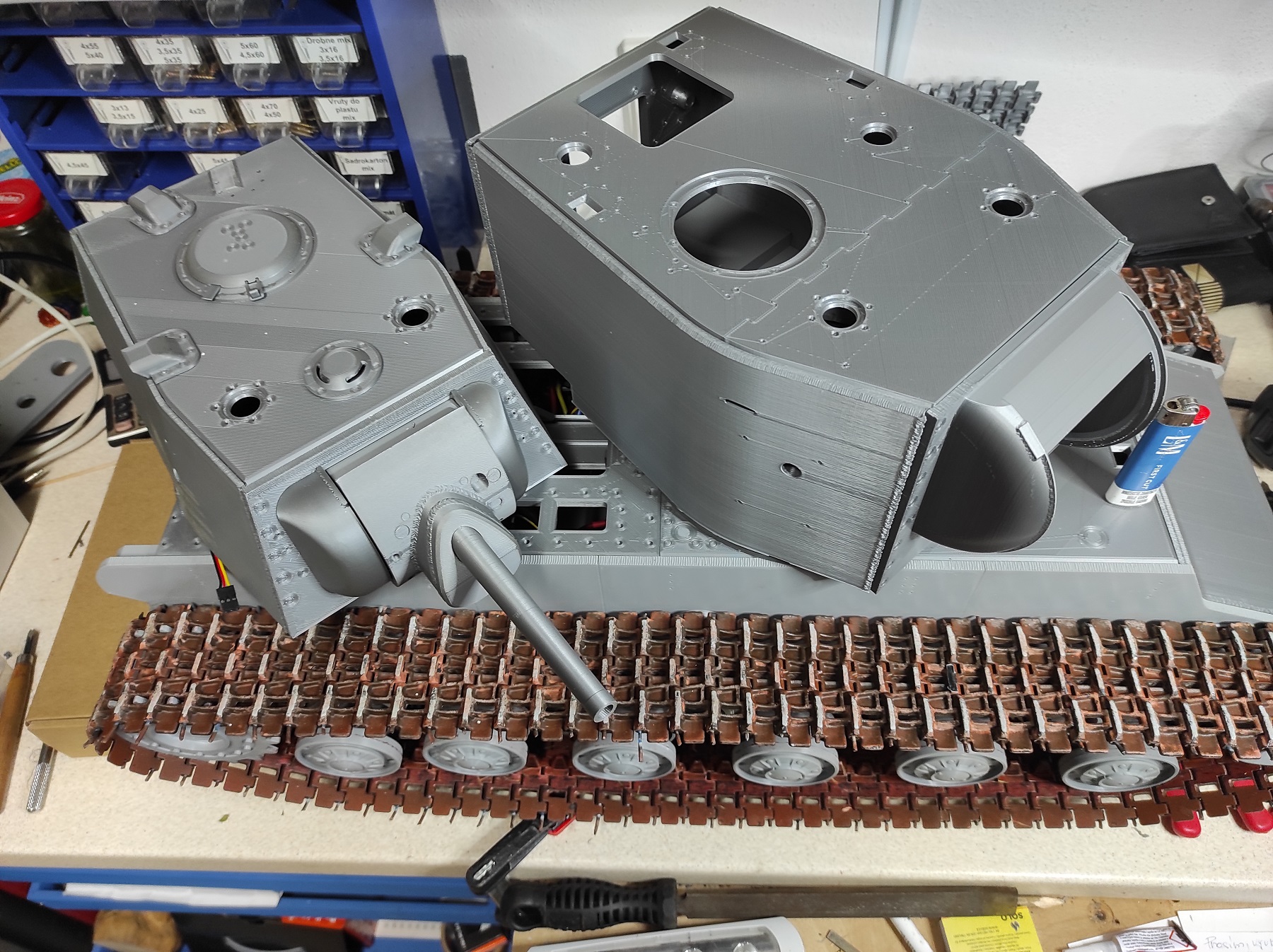 Dodělávám věž na KV-2. Zatím MT-2. Chybí přidat nějaké sváry, vypotit návod a jde to ven.
