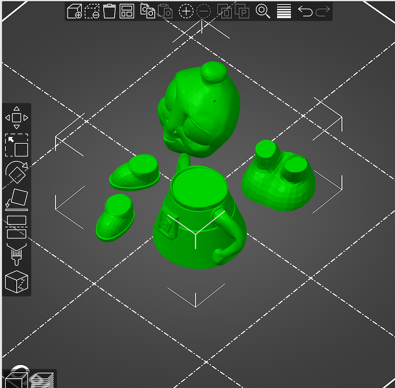 Když ho rozdělíš na části můžeš smazat nápis a postavička se nerozpadne na díly.